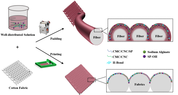 研究内容:立足智能变色纺织品发展滞后的现状,解决光致变色染料与纤维无亲和力、耐光疲劳性差的实际问题,研发了功能化螺吡喃变色材料、长寿命光致变色纳米纤维素基复合材料、光致变色水凝胶、光致变色微胶囊等织物涂层材料,进而开发智能可穿戴可视化监测执行器。
