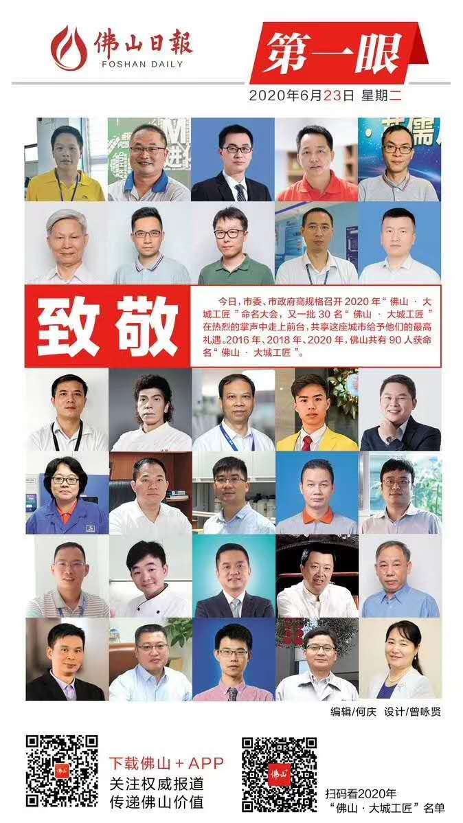 6月23日,“佛山·大城工匠”命名大会在佛山市召开,高规格命名第三批共30名“佛山·大城工匠”,给予其最高礼遇和荣光。我校染整98级校友、广东溢达纺织有限公司资深研发工程师袁辉荣获2020年“佛山·大城工匠”称号。