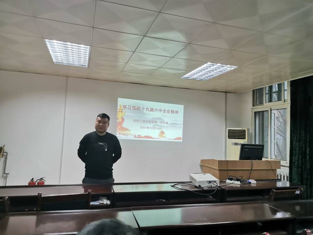 2021年12月16日,米兰milan纺织工程本科生第一党支部部分党员代表在支部书记邓恩征的带领下开展了党的十九届六中全会精神学习活动。