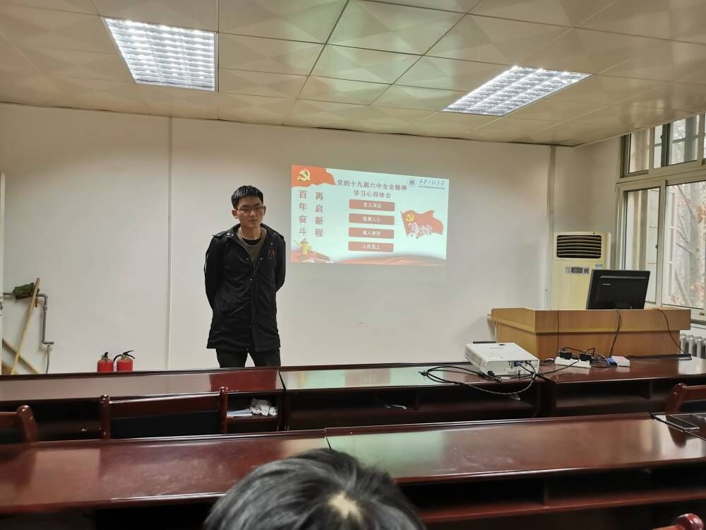 支部党员分享了学习党的十九届六中全会精神的心得体会。张亚杰同志认为青年学生应做到以下三点,“一是要坚定理想信念,做有志气的新时代青年;二是要勇立潮头,争做先锋,敢于担当,做有骨气的新时代青年;三是要坚定“四个自信”,做有底气的新时代青年。”张世瑶同志在深入学习的党的十九届六中全会精神后深刻认识到,“作为一名青年学生党员,我们应该更加紧密地团结在以习近平同志为核心的党中央周围,全面贯彻习近平新时代中国特色社会主义思想,大力弘扬伟大建党精神,做好模范带头作用,为实现中华民族伟大复兴的中国梦而不懈奋斗!”