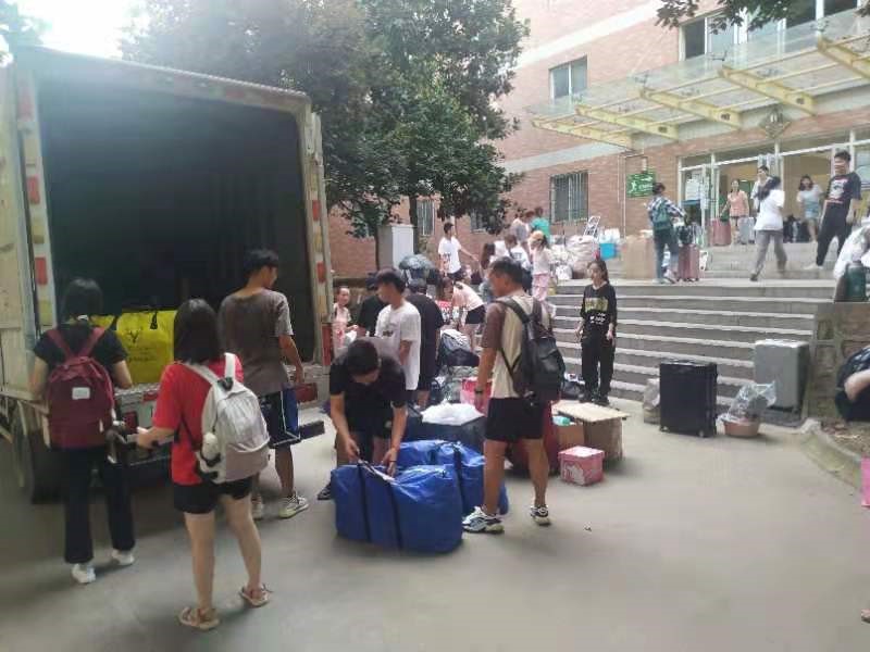 本次搬校区义工活动有103名家庭经济困难学生参与其中。为确保搬迁工作的顺利进行,义工岗学生早早就集合到位,做了充分准备,蓄势待发。一部分义工岗学生负责帮助搬校区同学收拾搬运行李,一部分义工岗学生负责帮忙把行李搬到搬家车上。天气虽然炎热,每一位义工岗学生都没有怨言,认真负责地完成自己的工作。他们把劳动最光荣和无私奉献的意义进行了深刻的诠释。
