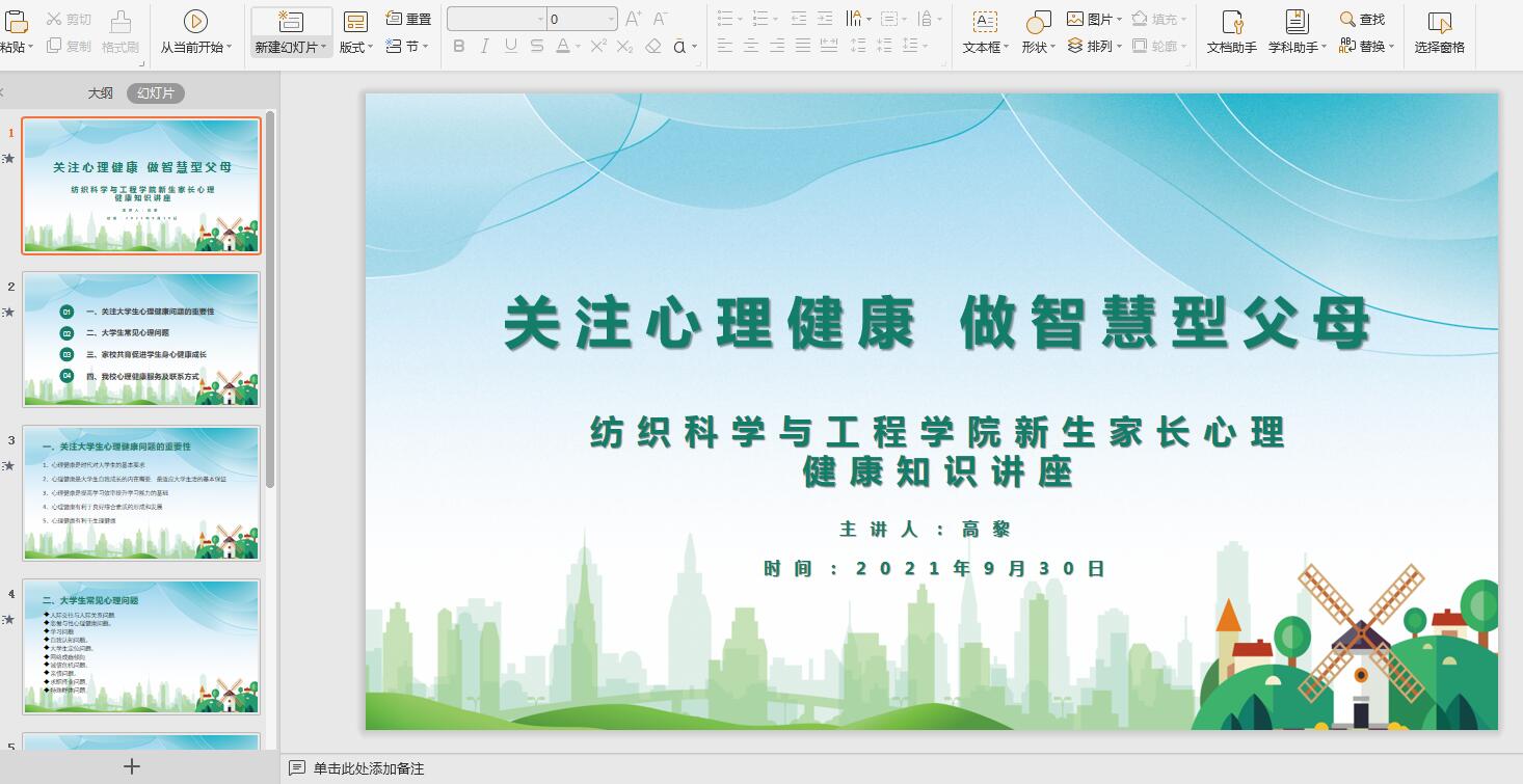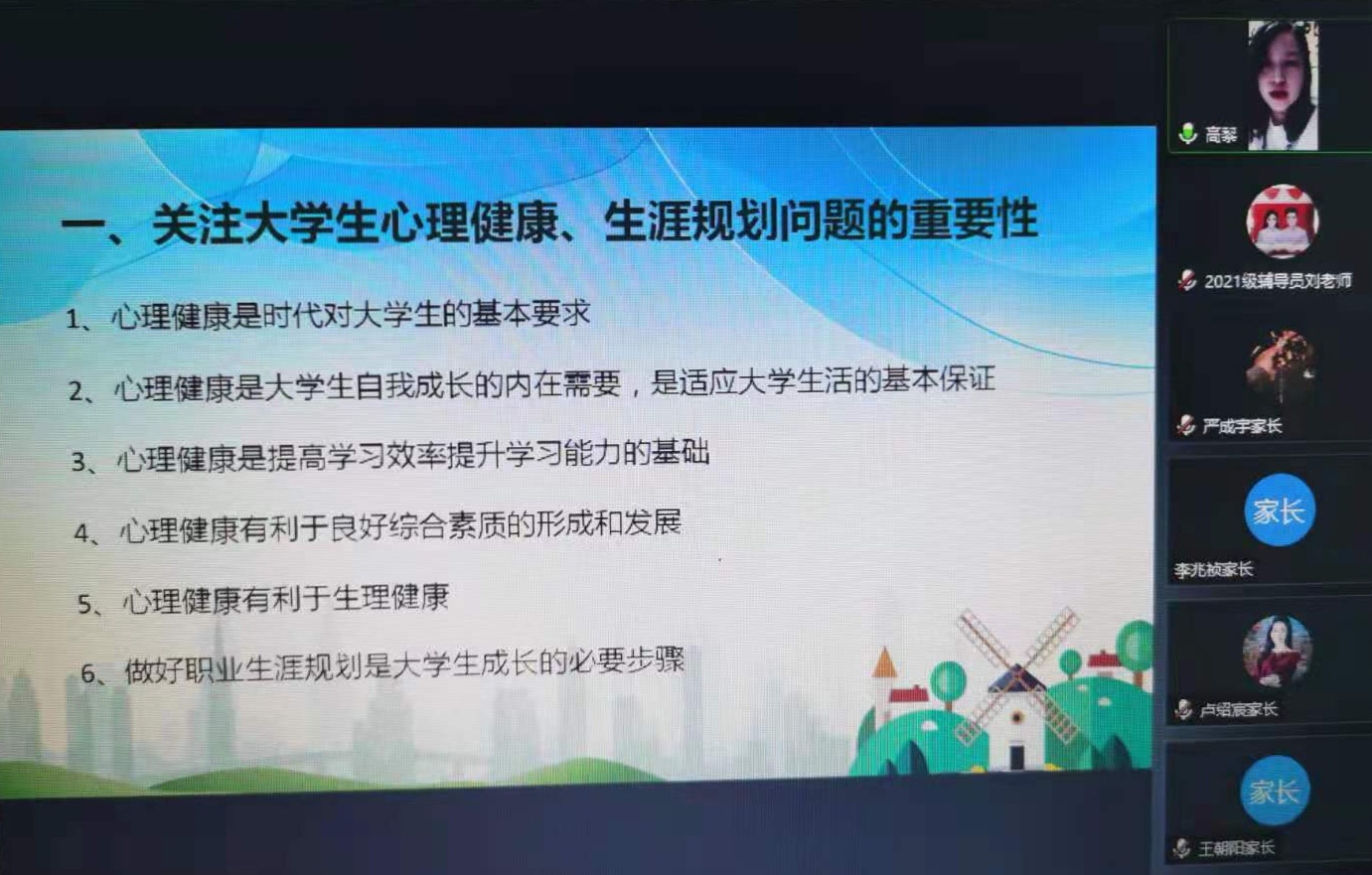 高黎就家长们关心的大学生心理健康问题进行了详细讲述,讲座内容主要包括大学生心理健康的重要性、大学生常见心理问题、如何通过家校共育促进学生身心健康成长,以及我校特色心理健康教育与服务工作等多个方面。