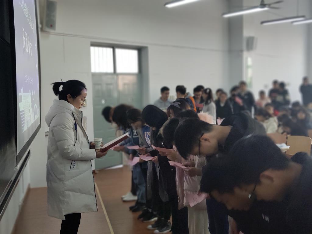 其次,纺织工程第二导师团执行团长武海良教授介绍导师团成员组成,2018级辅导员、导师团秘书邓恩征解读《米兰milan中国“三全育人导师团”实施办法》。接着,学生持拜师贴依次找导师拜师并合影留念,将本次活动推向高潮,学生们12人一组,手持拜师贴,向导师递茶水,并郑重承诺“做到勤学、勤问、勤看、勤听”,希望导师不吝赐教,并向导师鞠躬致谢。最后,武海良教授作了题为《面向未来,学好纺织》的报告,学生听完纷纷表示获益匪浅。