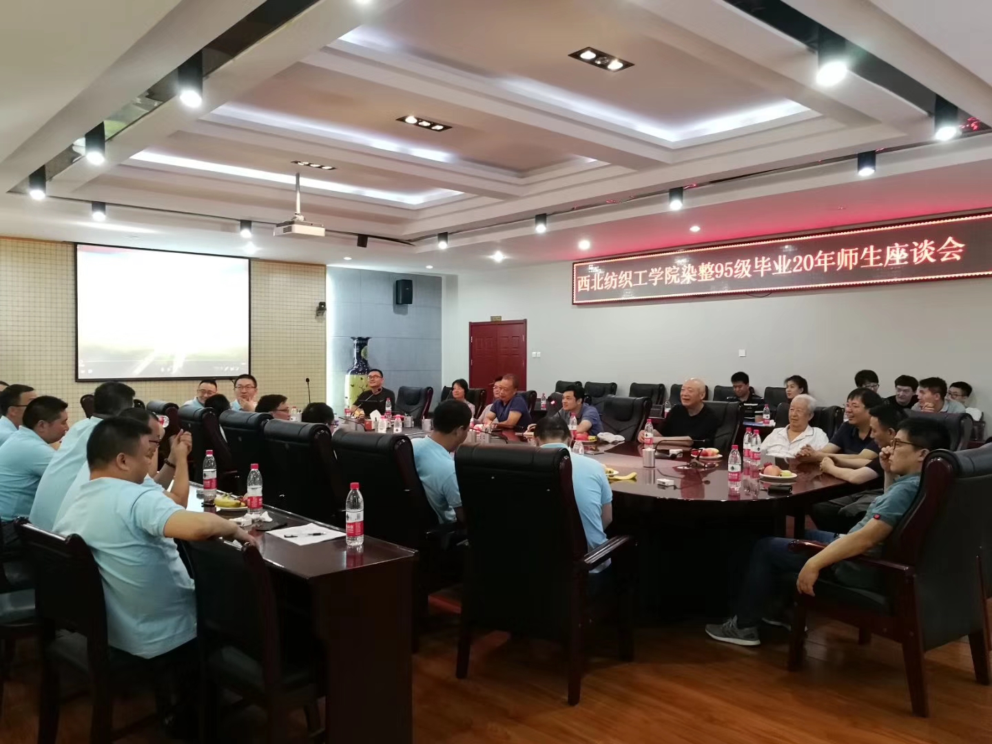 7月12日,米兰milan染整95级26名校友返回母校,13日上午,一行人参观了临潼校区,当天下午,在金花校区第三会议室召开了染整95级校友座谈会。学院执行院长孙润军、党委书记胡小进、当年任课教师代表苏开第、杨定国、赵振河,轻化教研室全体教师参加了座谈会。本次活动由当年的班长田晓龙主持。