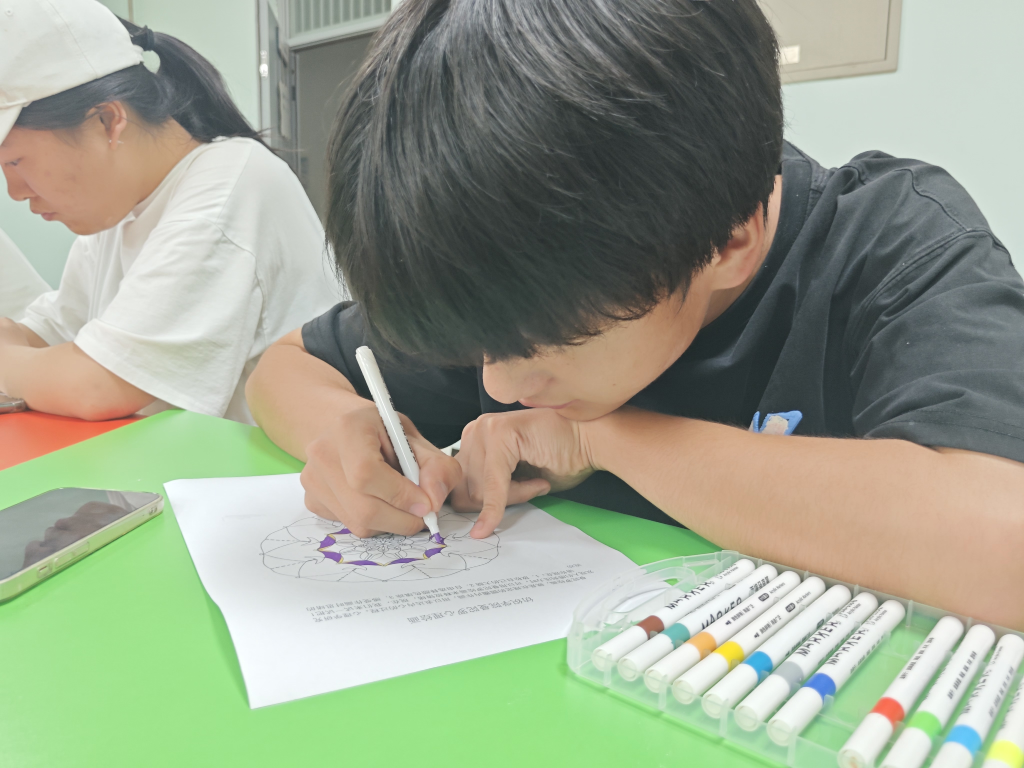 除了创作彩绘,活动还设置了一些互动环节,如彩绘曼陀罗感悟分享。参与者们通过分享增强了彼此之间的了解和沟通,并有机会聆听他人的故事和经历。这种互动促进了心理上的互助与支持,营造了一个温暖和谐的氛围。