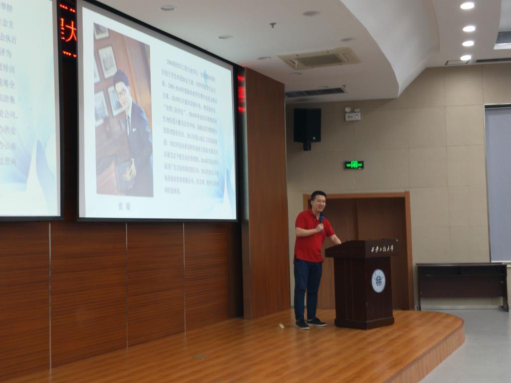 张璇通过一个个的小故事分享了自己在大学期间的学习生活状况,以及担任陕西省学生联合会驻会执行主席在团省委一年的工作经历对自己的帮助。又分享了在雅戈尔工作对自己后期创业的帮助,对有创业想法的学生提出了自己的建议。接着,他提出几个问题与在座的学生进行互动,通过这几个问题告诉大家一个道理“不要计较出生和外在条件,站在起跑线前的那一刻,大家都在同一个起点,但是后期的努力会决定你能跑多远”。最后,他把自己创业的经历、经验与大家做了分享,鼓励在座的同学要找到自己的兴趣点,敢于拼搏就一定会成功。