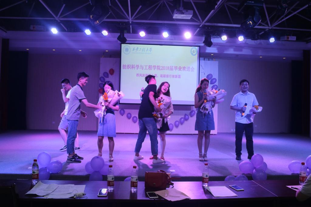 活动伊始,胡书记发表了致辞,表达了对2018届毕业生诚挚的祝贺并寄予殷切期望,希望他们坚持梦想,勇于创新,砥砺意志,心怀感恩,成为一名优秀的西工程大毕业生。接着,毕业欢送会的节目正式开始。这里不仅有饱含感情、风格多变的《歌曲串烧》,青春洋溢的舞蹈《咖喱咖喱》,感叹时光飞逝的《栀子花开》,还有《送别》《再见》,挥别不舍的六月飞扬的青春。匆匆四年,沉淀岁月。表演结束后,毕业生和导师合影留念。本次毕业欢送会在同学与老师的欢声笑语中拉下了帷幕。
