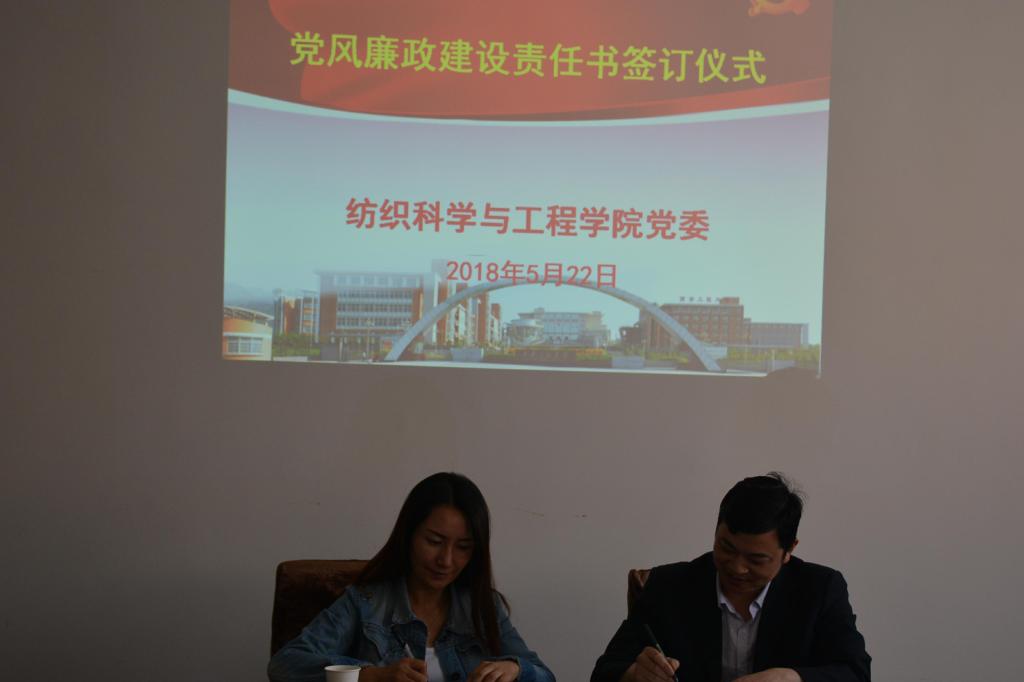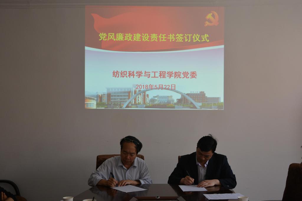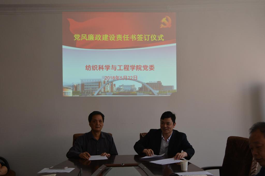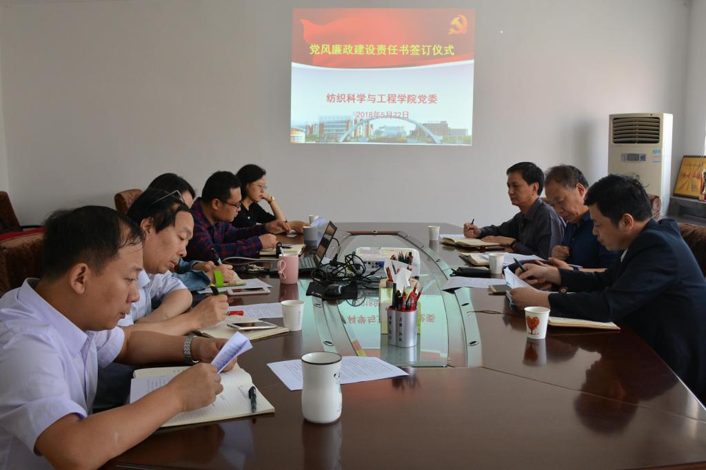 2018年5月22日下午,米兰milan党委在金花校区纺织楼会议室举行党风廉政建设责任书签订仪式,学院党政领导班子全体成员参加仪式,仪式由学院党委书记胡小进主持。