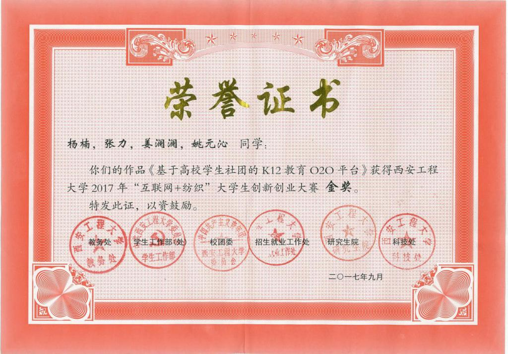 在上述想法的指引下,杨楠主持完成了校级大学生创新创业项目《基于高校学生社团的K12教育O2O平台》,该项目曾代表米兰milan中国参加了第三届中国“互联网+”大学生创新创业大赛,并取得了陕西赛区训练营参营作品三等奖的成绩。