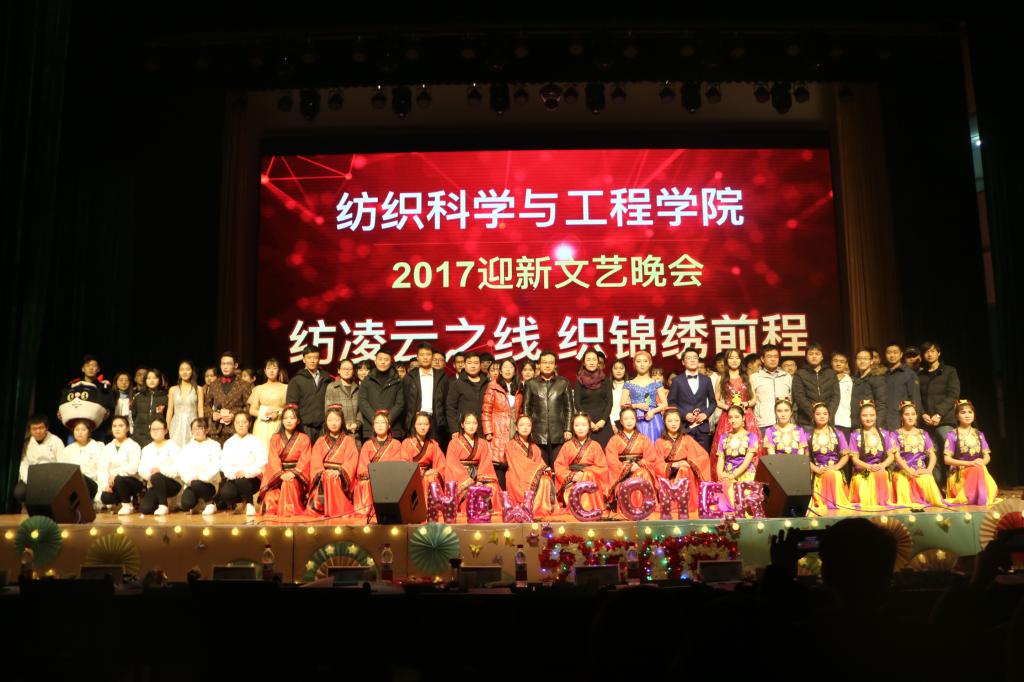 大会分为两个篇章,首先进行的是学风建设表彰大会。王晓先老师总结说到在过去的一年里,纺织院学风建设卓有成效,在科技竞赛、暑期实践、志愿项目等方面频频获奖,深受好评,同时王老师也向全体同学提出三点建议,希望同学们能提升自我思想,跟随党的脚步,注重第二课堂的发展。随后郭书记宣读了学风建设表彰文件,学院领导、嘉宾为国家奖学金、国家励志奖学金等各类奖学金获得者、先进科技工作者代表、“互联网+”、“希望杯”获奖代表、暑期社会实践获奖代表、体育先进工作者、文体类比赛获奖代表颁发证书。随后,优秀学生标兵张一鸣作为获奖代表与同学们分享了他的学习工作经历与感想,并激励同学们要不断充实自己,培养好习惯。“纺凌云之线,织锦绣前程”迎新晚会在青春火热的开场舞中拉开序幕,整场节目异彩纷呈、高潮迭起,歌曲、相声、小品、街舞、民族舞、诗朗诵等学生们精心准备的节目一一登台亮相。同学们多才多艺,激情飞扬,尽情展示自己的才华和理想,17级辅导员曹鑫加盟班团节目,将本场晚会推至高潮。