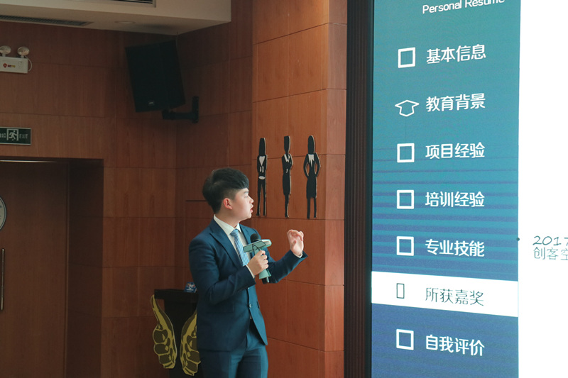 复赛分两组进行,设有“自我展示”、“问答环节”两个环节。选手们用针对性且多元化的自我推荐、有思想有深度的答辩向评委们证明了自己的实力。在第一环节中选手们展示自己精心制作的ppt并进行演讲,评委们针对选手的ppt提问,选手们自信大方的台风博得了现场观众的阵阵掌声。第二环节评委根据选手的应聘职位以及选手们的现场表现进行了细致而中肯的分析点评,使选手们获益匪浅。其中来自人文学院求职应聘对外汉语教学的段泽瑾首先以一段流利的英语演讲获得了评委老师的赞扬,接着用她丰富的社会经历和精彩的个人简介赢得了老师的青睐。随后戴总进行总结点评,他鼓励同学们要多参加活动,增加自身参赛经验。经过紧张激烈的角逐,段泽瑾等十位同学晋级决赛。最后,老师向晋级选手颁发晋级卡并合影留念。