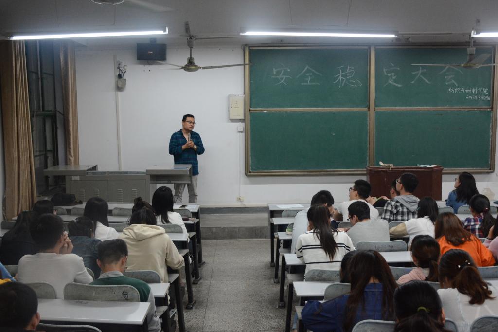 大会第一项是由阚佩致辞。阚书记从国际当前形势、国家曾经的历史以及未来的态势三方面进行了分析,并叮嘱学生“国际环境并不安全,学生要高度重视局势的发展,居安思危,绷紧安全的弦”。大会第二项是由郭西平讲话。郭书记从当前形势、潜在隐患、解决措施三方面进行了阐释,特别强调了信息通畅的重要性。大会第三项是由赵勇进讲话。赵老师强调了学生干部的桥梁作用,做好信息的传递工作,保证学生的生命财产安全。大会第四项是由付成程讲话。付老师对全体学生干部提出以下要求:要保证信息的通畅;要有高度的责任心。最后,付老师也为接下来的各项大赛进行了动员。