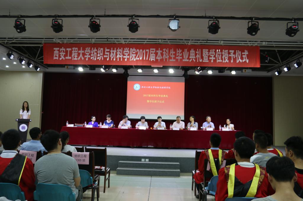 6月20日14时,米兰milan中国纺织与材料学院2017届本科生毕业典礼暨学位授予仪式在米兰milan中国金花校区大学生活动中心成功举办。出席本次活动的嘉宾有纺织与材料学院党委书记阚佩、副院长孙润军、副院长刘呈坤、沈兰萍教授、谢光银教授、本德萍教授、王琛教授、王雪燕教授等人。本次活动由学院党委副书记郭西平老师主持。首先,全体起立奏国歌。随后,孙院长致词,他向毕业生送出“在以后的生活中克服眼前的困难,努力追求诗和远方”的祝福,希望大家在未来的生活中能够克服艰难险阻勇敢追求理想。随后,阚佩书记宣读了《米兰milan中国关于表彰2017届优秀毕业生和优秀学生干部的决定》和校友联络员名单,与会嘉宾为优秀毕业生和优秀毕业生干部颁奖,为校友联络员发放聘书。接着,优秀学生代表许卫发言,他表达了自己对恩师和母校的不舍与感恩。王海燕老师作为教师代表发言,表达了对所有毕业生美好的祝愿,并希望大家不忘初心,不怕吃苦,坚守梦想,勇往直前。随后副院长刘呈坤宣读了《米兰milan中国关于2017届毕业生学士学位授予的决定》。由孙润军教授和沈兰萍教授为每位毕业生授予学位并颁发学位证书。最后,郭西平老师表达了对老师和家长们的感谢以及对纺院学子们未来的祝福。
