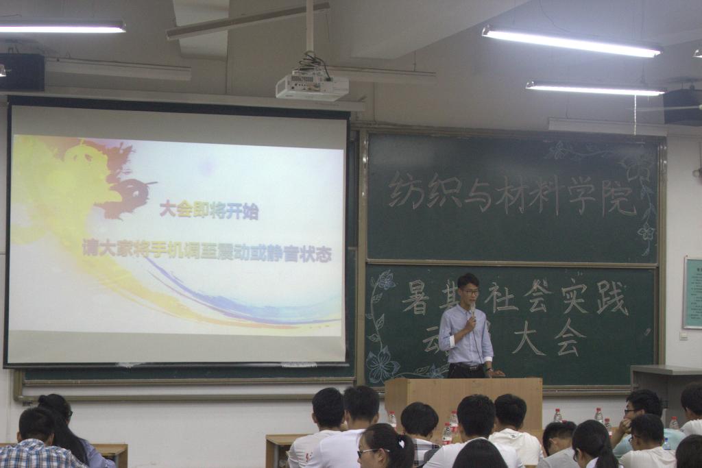 2017年6月12日,纺织与材料学院在临潼校区教学楼B栋133室举行了暑期社会实践动员大会。参加本次活动的有纺织与材料学院2016级辅导员邓恩征老师,2015级参与学院暑期社会实践活动的同学以及2016级全体学生。本次活动由科协干事李亚森主持。