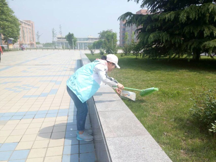 志愿者们分为五个小队,在新,旧操场,中心广场,图书馆周边,校前门进行服务清扫工作。炎日当空,但志愿者们不怕累,不怕热,积极参与活动,认真清扫,为绿意盎然的校园又增添了几分干净和整洁,校园内老师看到辛勤工作的志愿者们给予了高度评价。