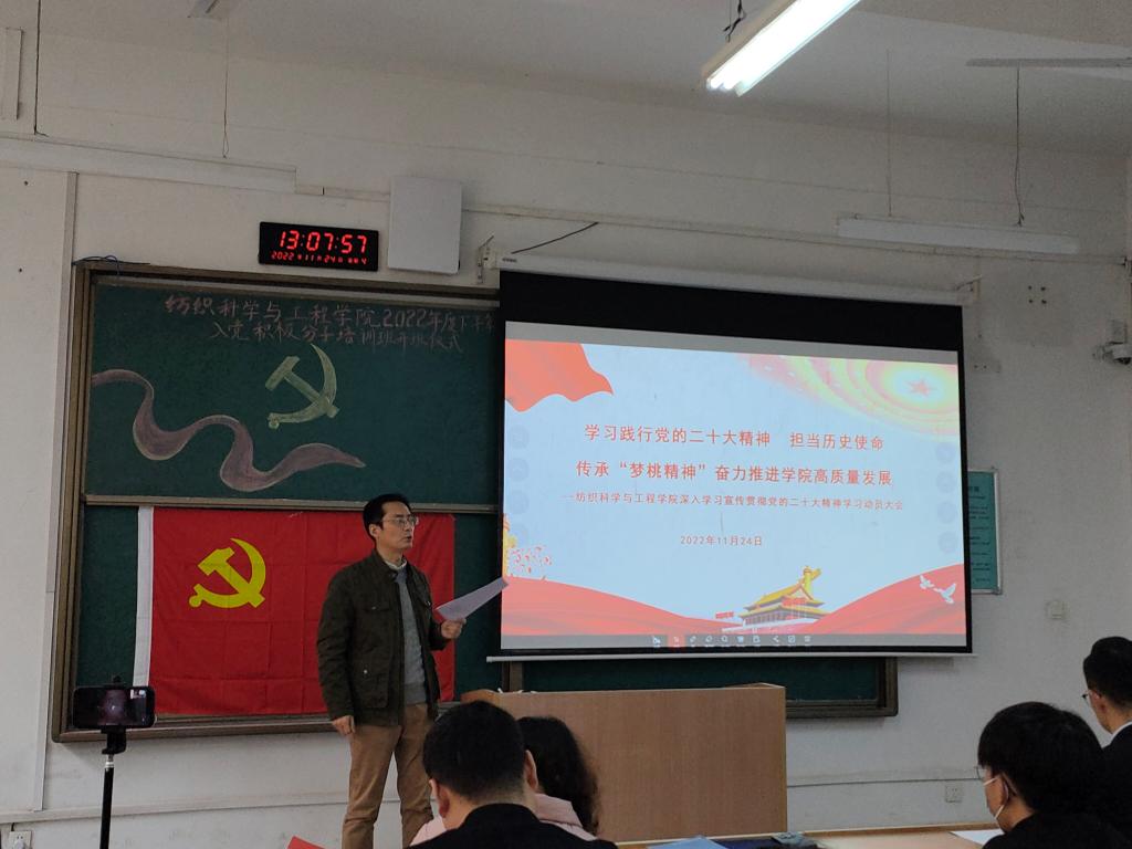 2022年11月24日,米兰milan通过线上线下方式召开深入学习宣传贯彻党的二十大精神动员大会。学院党委书记李伟、党委副书记朱宇军、党支部书记及师生党员参加会议。