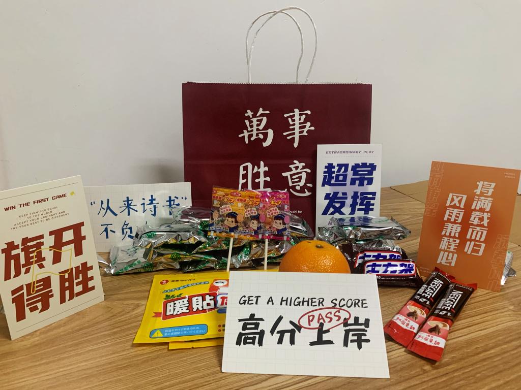 首先,朱宇军向考研学生强调,在最后的关键时期一定要保持良好心态,她向大家介绍了学院为140余名考研学生准备的考研福袋。福袋里有脐橙,寓意“旗开得胜,马到成功”;棒棒糖寓意“榜上有名”,还有暖宝宝、士力架、咖啡、幸运挂件、加油卡片、饼干。这些小礼品都有美好的寓意,更是饱含了学院老师的殷殷期盼和满满祝福,希望同学们都能考上理想的学校,一战成硕。