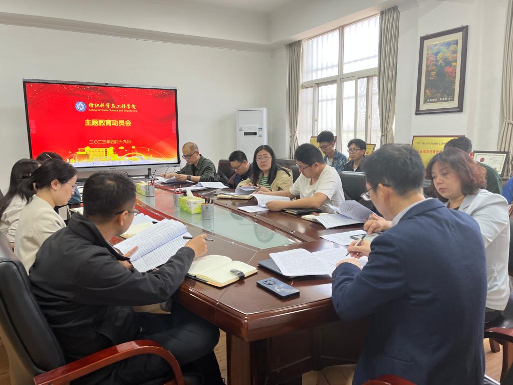 最后,他对开展主题教育进行部署和安排,并提出五点要求:一是全体党员干部、教职员工要提高思想认识,把开展好主题教育作为一项重大政治任务,增强开展主题教育的政治自觉、思想自觉、行动自觉,推动主题教育深入开展,取得实效;二是要持续强化理论武装,坚持学思用贯通、知信行统一,全体党员干部、教职员工要不断把学习贯彻习近平新时代中国特色社会主义思想引向深入;三是要着眼解决实际问题深入开展调查研究,了解师生情况及需求,公开、透明解决问题,以高质量调查研究推动学院工作高质量发展,在服务学校发展大局中扛起责任、彰显作为;四是要从严从实检视整改,着力解决理论学习、政治素质、能力本领、担当作为、工作作风、廉洁自律6个方面存在的问题;五是要压实政治责任,科学系统谋划,精心组织推进,加强宣传引导,科学务实高效地开展好主题教育,确保主题教育见行见效。(撰稿:苏娜 审稿:李伟)