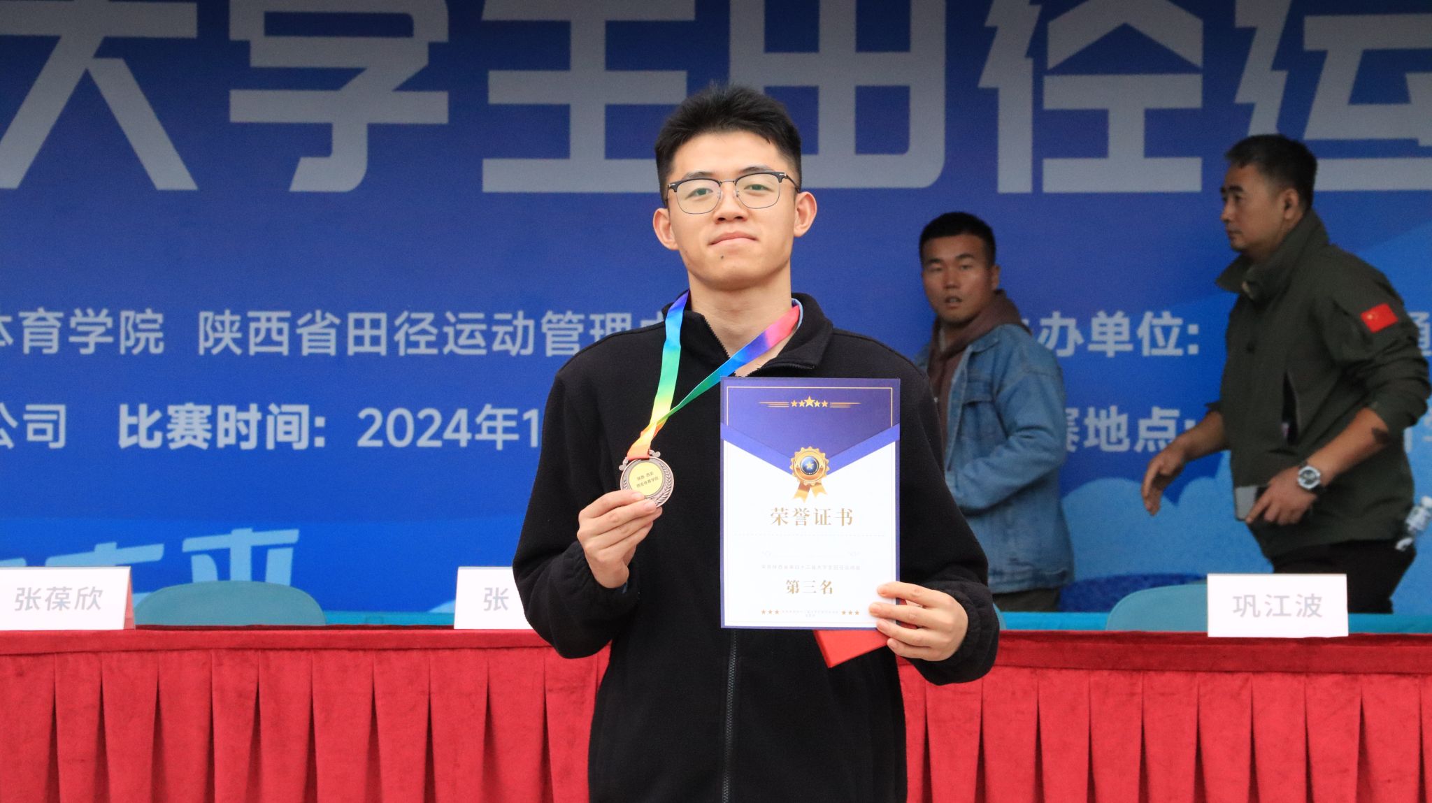 2024年11月7日至10日,陕西省第四十三届大学生田径运动会在西安体育学院顺利举办。在此次运动会中,我院2021级本科生范大程、2022级本科生郭浩东和2023级本科生杨济铭代表我校参赛并荣获佳绩,祝贺他们!