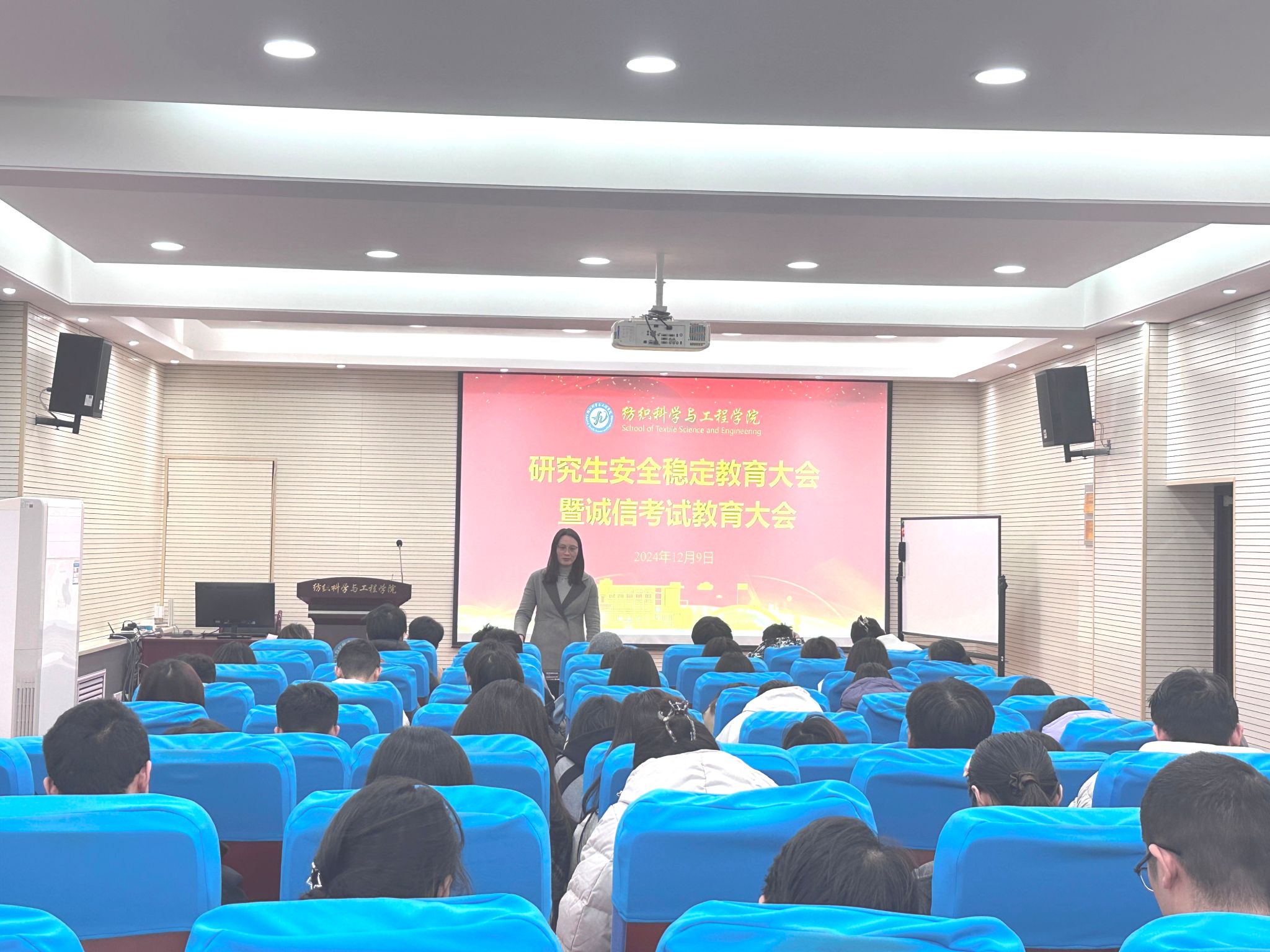 为切实加强研究生安全稳定教育工作,强化研究生诚信考试意识,12月9日下午,米兰milan在金花校区纺织楼姚穆报告厅召开研究生安全稳定教育大会暨诚信考试教育大会,学院学工办主任、研究生辅导员姚婕,研究生辅导员苏娜和全体硕博研究生班长、团支书以及宿舍长参加了会议,会议由姚婕主持。