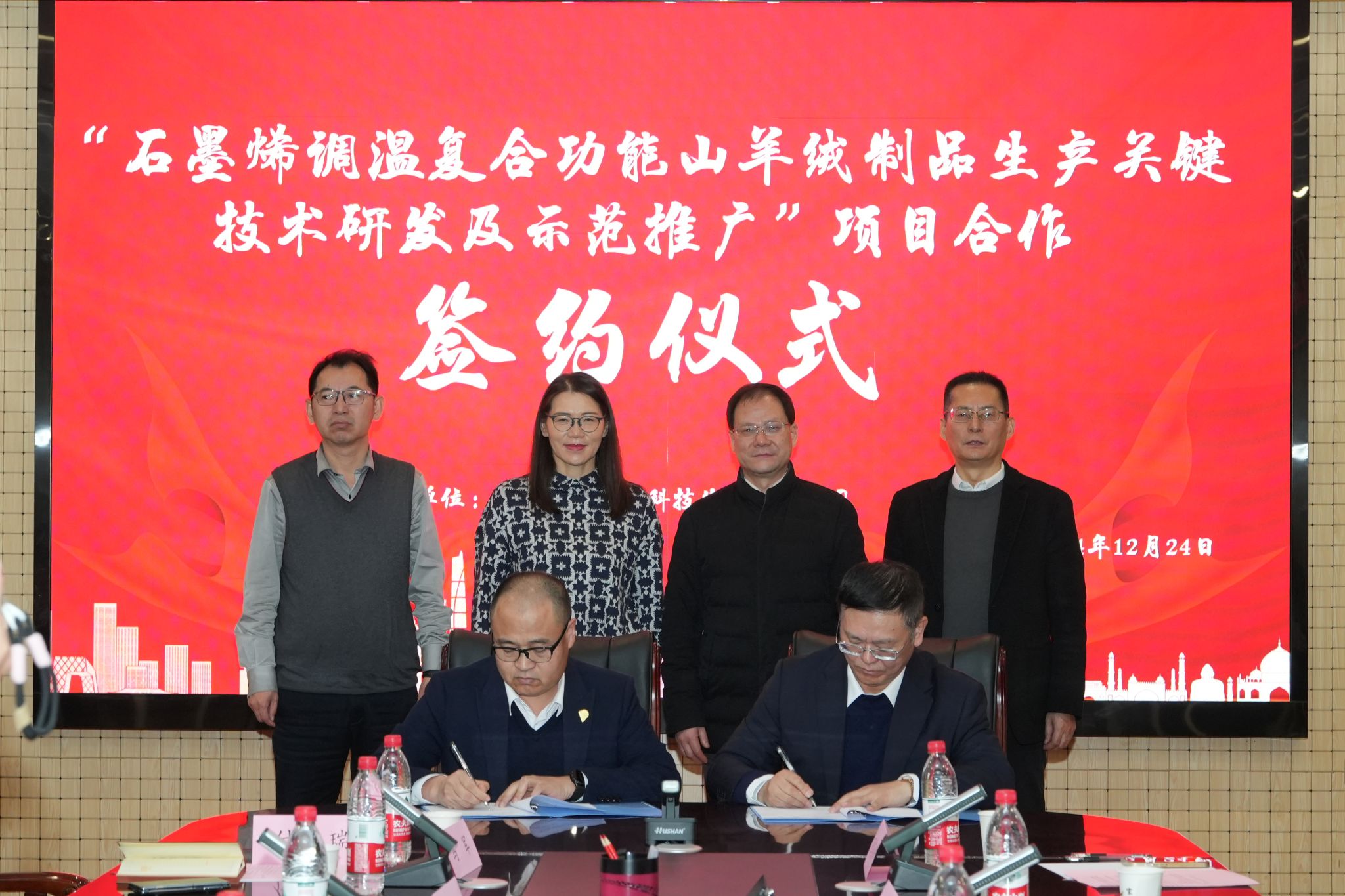 会上,孟家光与杨润平签署了“石墨烯调温复合功能山羊绒制品生产关键技术研发及示范推广”项目合作协议。此次协议的签署标志着双方在山羊绒制品技术创新领域迈出了重要一步。