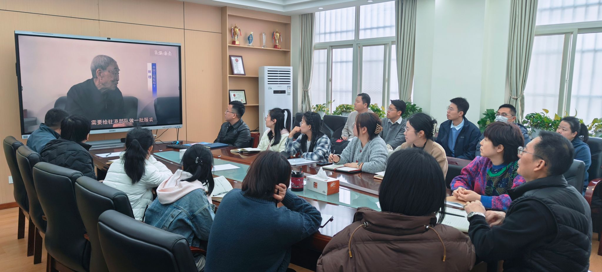 全体参会人员一同观看了展现姚穆院士为纺织事业奉献一生的光辉历程的纪录片,其中,着重提到了姚穆院士攻坚克难为驻港部队研发军港纶的事迹。这一新型面料不仅满足了驻港部队的各项需求,还在纺织领域引发了新的技术变革,为我国军事纺织装备的现代化进程做出了卓越贡献。王秋实作为姚穆院士的学生、校姚穆院士事迹宣讲团成员进一步为大家讲解了姚穆院士的事迹,让青年教师们对姚穆院士的伟大科学家精神有了更为直观且深刻的理解。