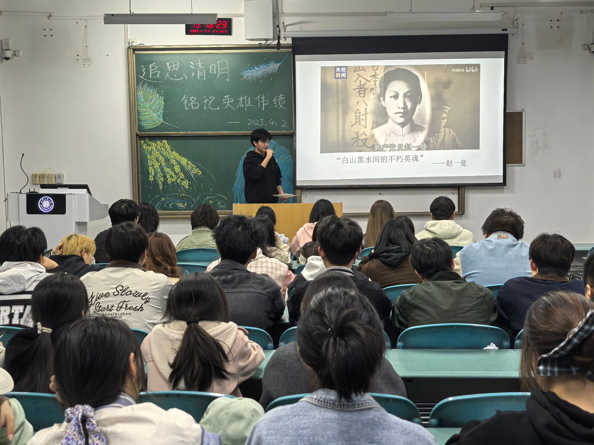 4月2日,学院青年志愿者协会开展“追思清明,铭记英雄伟绩”红色经纬读书班活动,以沉浸式学习开启清明追思。活动现场通过“三维叙事”构建红色记忆空间:通过《青春》节选诵读再现李大钊“以青春之我创建青春之国家”的豪情;借助视频动态演示重现陈树湘“断肠明志”的悲壮时刻;配合《可爱的中国》片段情景朗诵,让方志敏笔下“欢歌代替悲叹”的理想中国跃然眼前。特别设置的“时空信箱”环节,收集到50余份手写感言,“您披荆斩棘换来的春天,我们定会倍加珍惜”等真挚留言,与中华英烈网的电子献花共同织就跨越时空的致敬。