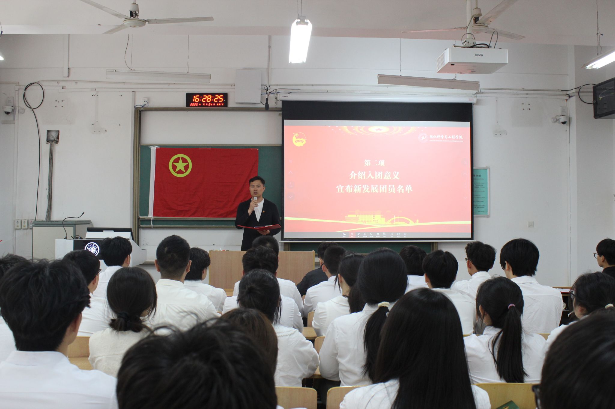 仪式中,曹鑫郑重宣读了学院新发展团员名单,向光荣加入中国共产主义青年团的同学们表示祝贺,向为共青团事业辛勤付出的团员骨干致以谢意。他强调了共青团作为党的助手和后备军的重要使命,并向全体新团员提出三点希望:一要坚定理想信念,做“有魂”的新时代青年;二要练就过硬本领,做“有才”的新时代青年;三要践行社会责任,做“有为”的新时代青年。