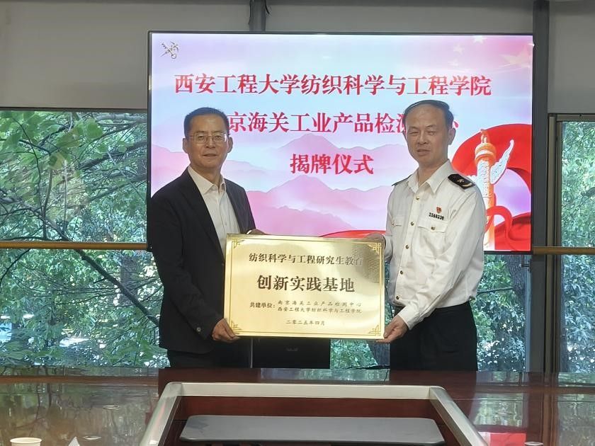 双方正式签署产学研合作协议,并共同为“大学生实习实践基地”和“研究生教育创新实践基地”揭牌。签约仪式上,封亚辉主任表示:“此次合作是检测中心深化产学研协同创新的重要举措。通过资源整合,我们不仅能提升技术研发能力,还将为行业标准化建设提供更精准的技术支持。期待双方在纺织品反光性能检测等领域实现技术突破,打造产学研合作标杆。”李伟书记对检测中心的支持表示感谢,并强调:“此次合作是学院深化产教融合的关键实践。通过资源共享,我们将加速科研成果从实验室走向产业化,培养更多适应行业需求的专业人才,为纺织行业高质量发展提供智力支撑。”揭牌仪式上,双方一致表示,“研究生教育创新实践基地”与“大学生实习实践基地”的设立,将进一步打通校企协同育人通道,为学生提供理论与实践深度融合的平台,为行业输送兼具创新能力和实践技能的高素质人才。