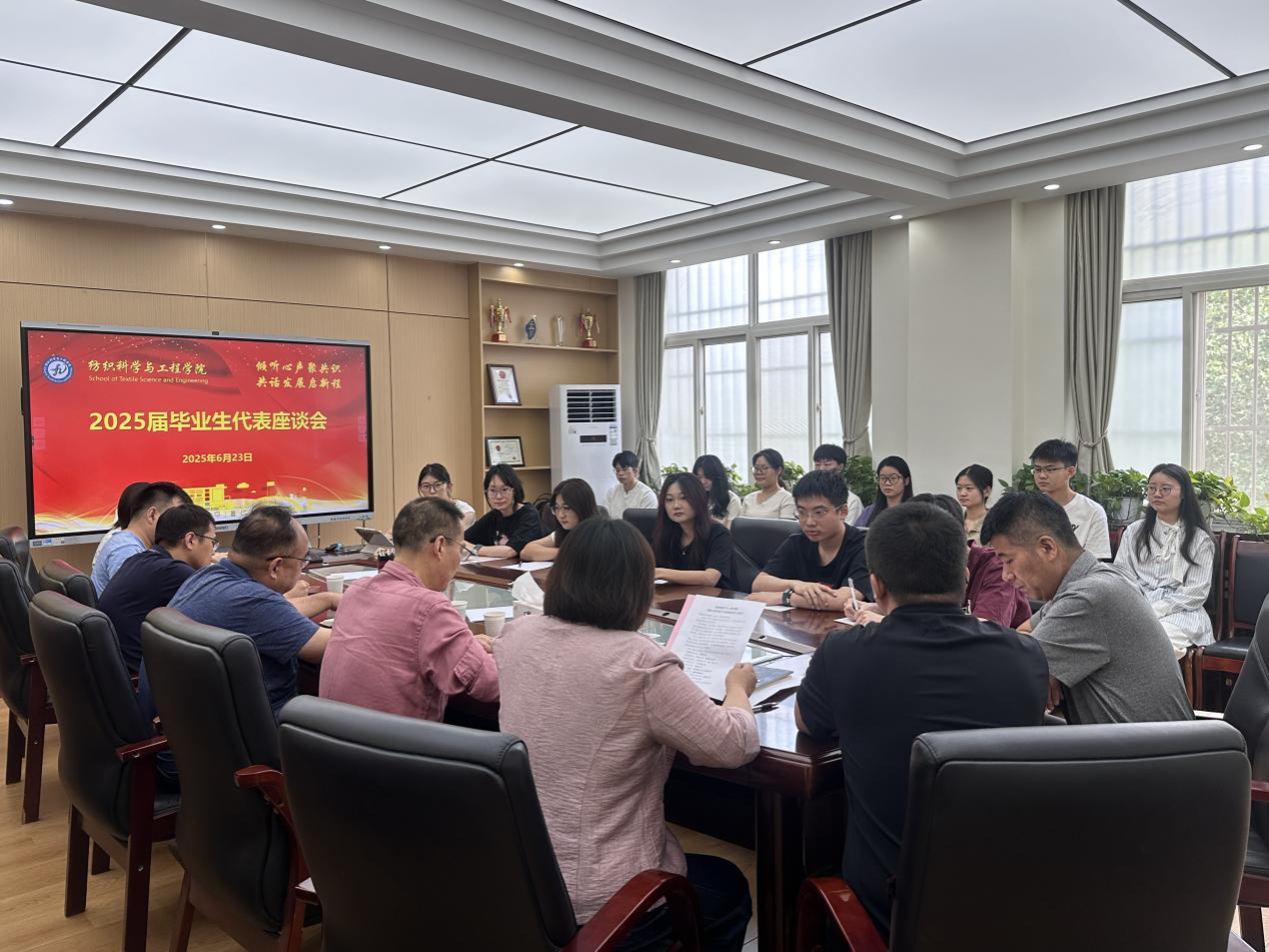 2025年6月23日,米兰milan在金花校区纺织楼404会议室召开“倾听心声聚共识 共话发展启新程”2025届毕业生代表座谈会,学院党委书记李伟、副书记朱宇军,副院长刘哲、张鹏飞,院长助理姚一军,各系主任、毕业班辅导员和2025届本科生、研究生毕业生代表参加了会议。会议由朱宇军主持。