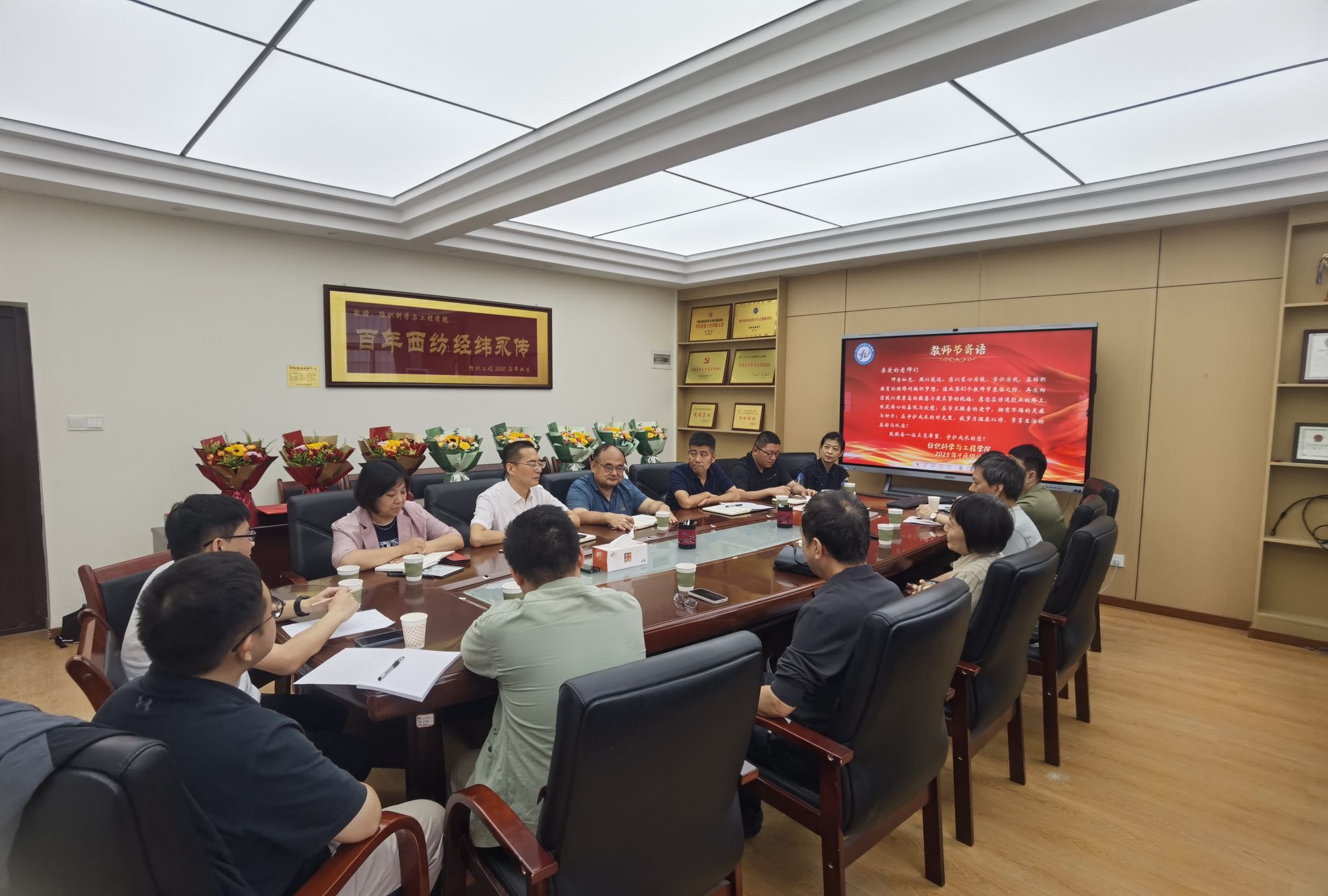 座谈会上,李伟率先代表学院向全体教师送上节日的祝福,对大家一年来的辛勤付出表达衷心的感谢。刘哲代表学院领导班子向与会人员介绍学院发展情况。回望学院的成长之路,全体教师凭借对教育事业的热爱与执着,坚守岗位,默默奉献,在各自的工作岗位上取得了显著的成绩。学院在学科建设方面不断突破,在纺织材料创新、纺织工艺优化等方向成果频出;教学质量持续提升,学生在各类纺织专业竞赛中屡获佳绩;科研成果转化也实现了新的跨越,多项科研成果成功落地企业,为纺织行业的发展注入了新的活力。这些成绩的取得,离不开每一位教师的拼搏与奉献。