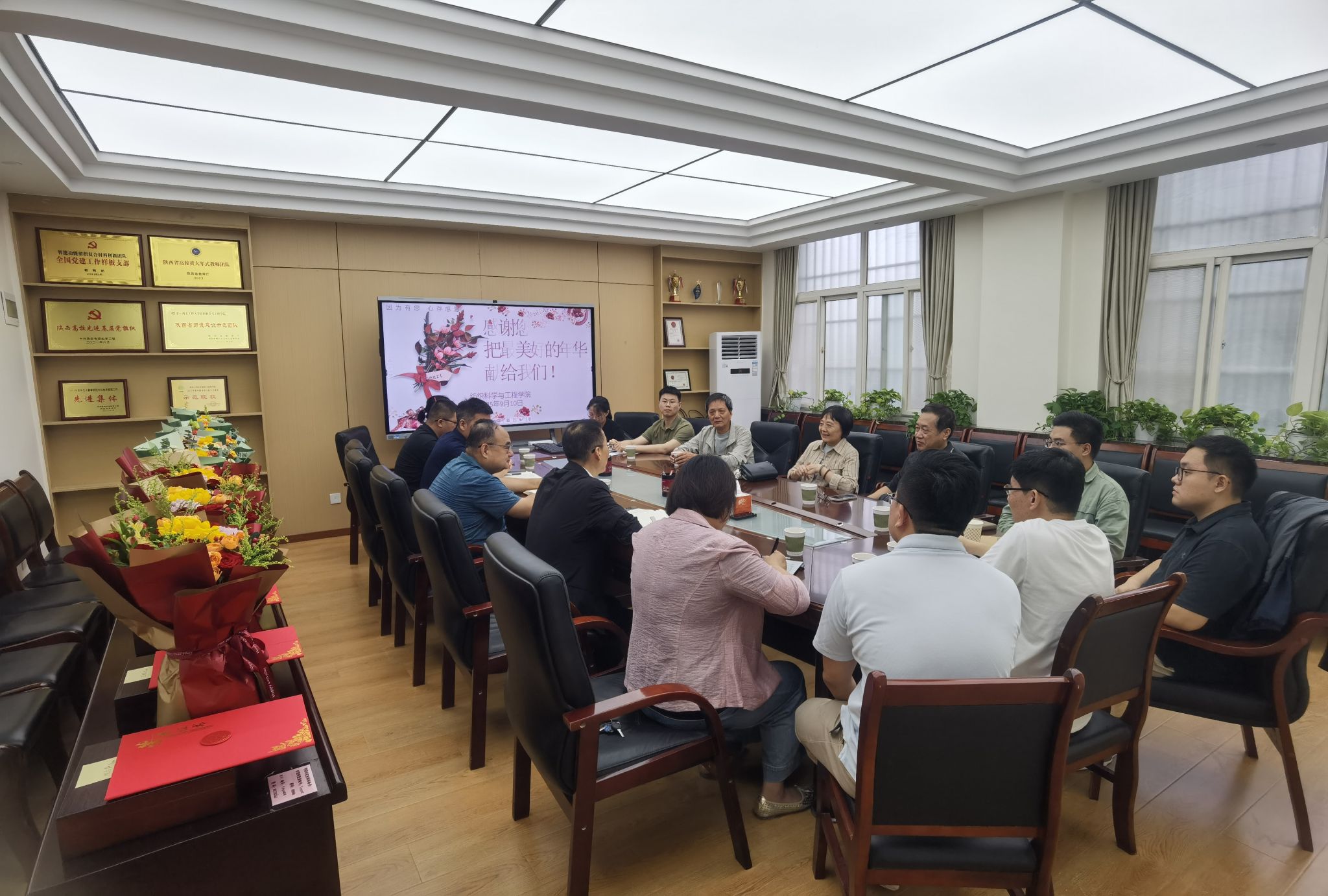 座谈会临近尾声,青年博士们饱含敬意与感谢,代表学院为荣休教师献上鲜花和荣休纪念品,这份礼物不仅镌刻着退休教师数十载深耕教育、立德树人的坚守,更承载着青年一代对前辈奉献精神的尊崇与传承。