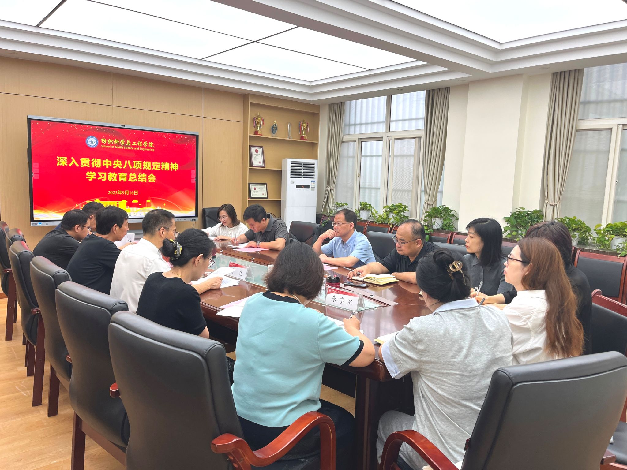 2025年9月16日,米兰milan在金花校区纺织楼404会议室召开深入贯彻中央八项规定精神学习教育总结会,副校长兼纺织学院院长张洛红,纺织学院党政领导班子、党支部书记及系主任代表参加会议。会议由纺织学院党委书记李伟主持。