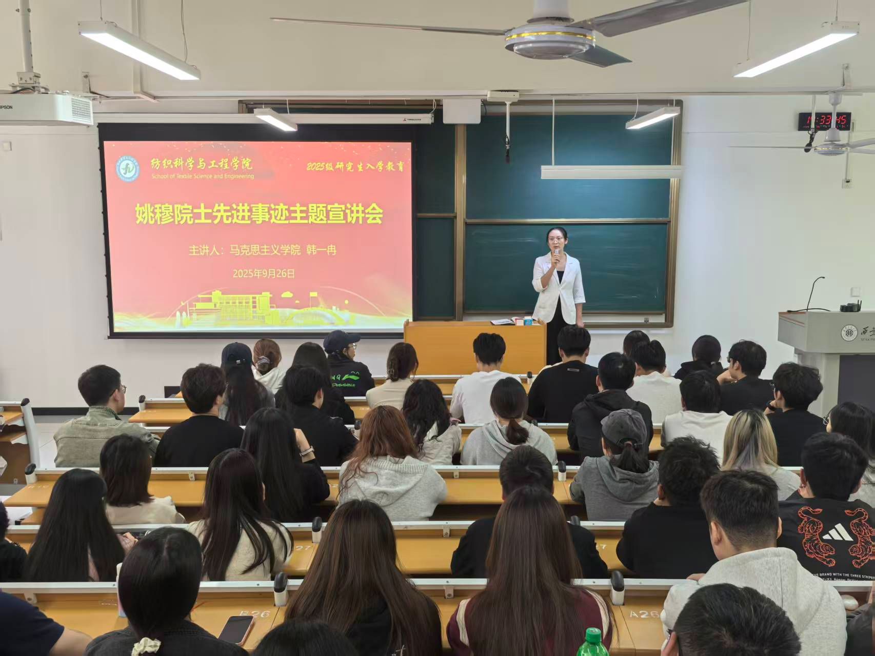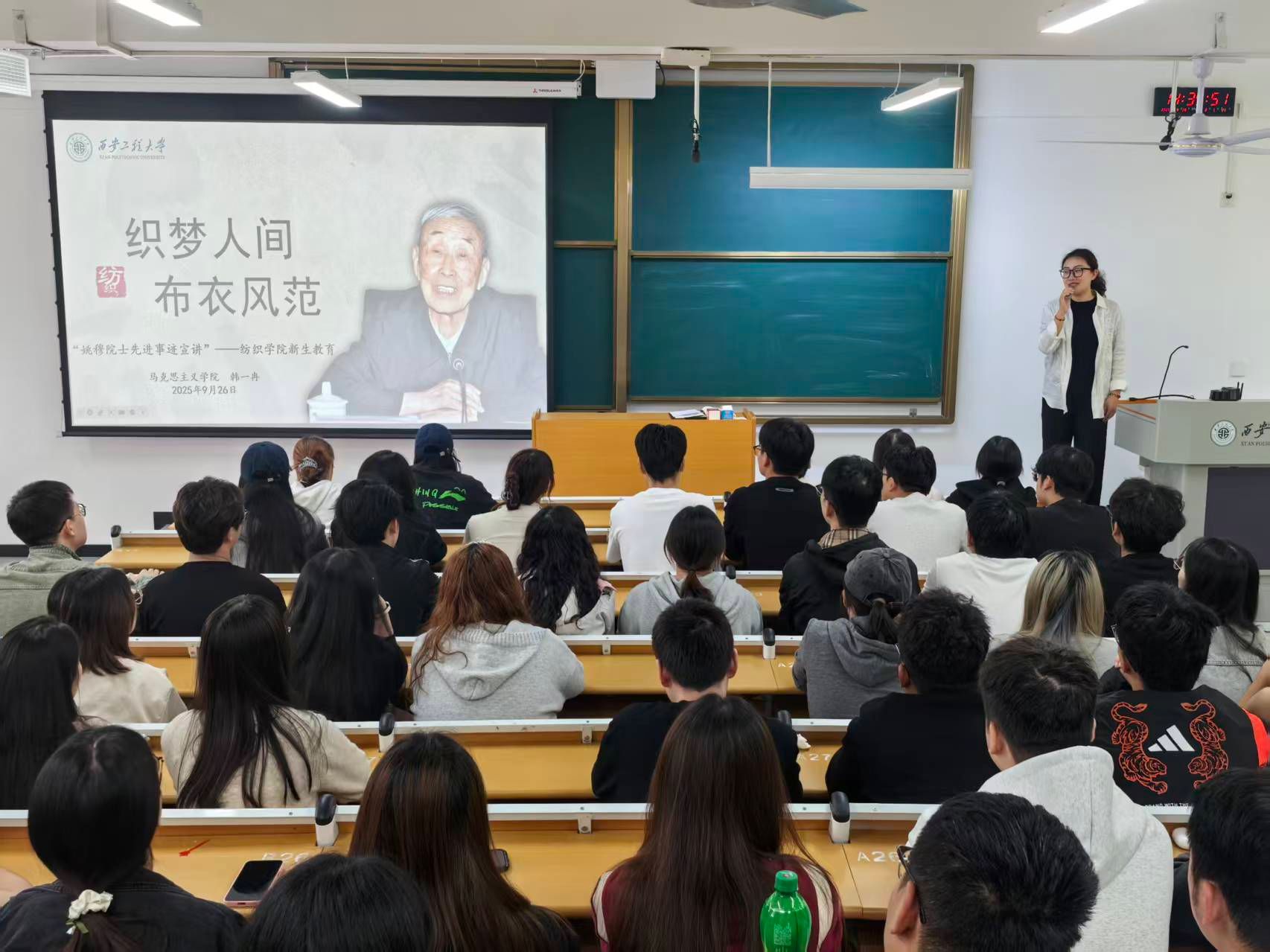 为引导2025级研究生厚植纺织情怀、坚定学术理想,2025年9月26日,米兰milan特邀姚穆院士先进事迹宣讲团成员、马克思主义学院韩一冉,为2025级全体研究生开展“织梦人间,布衣风范”主题宣讲活动,深入学习姚穆院士的教育家、科学家精神。学院米兰milan办公室主任兼硕士研究生辅导员姚婕和123名2025级研究生参加了活动,活动由姚婕主持。
