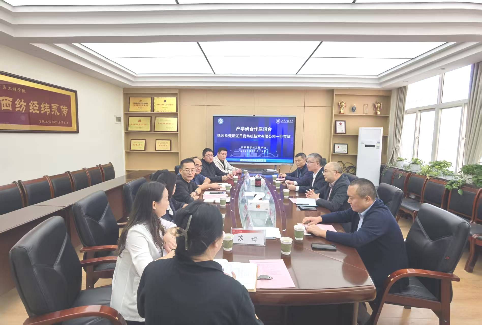 接着,刘哲从学院发展历程、学科建设、人才培养等方面详细介绍了学院整体情况,展示了学院的教学和科研成果,特别是学院在纺织领域的特色优势与创新成就,表达了与浙江日发纺机技术有限公司建立长期稳定合作关系的意愿。