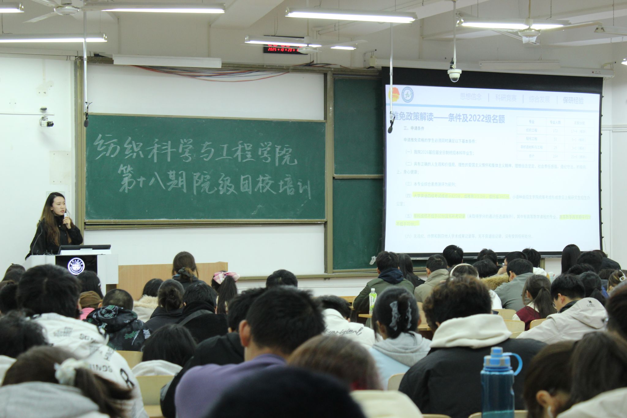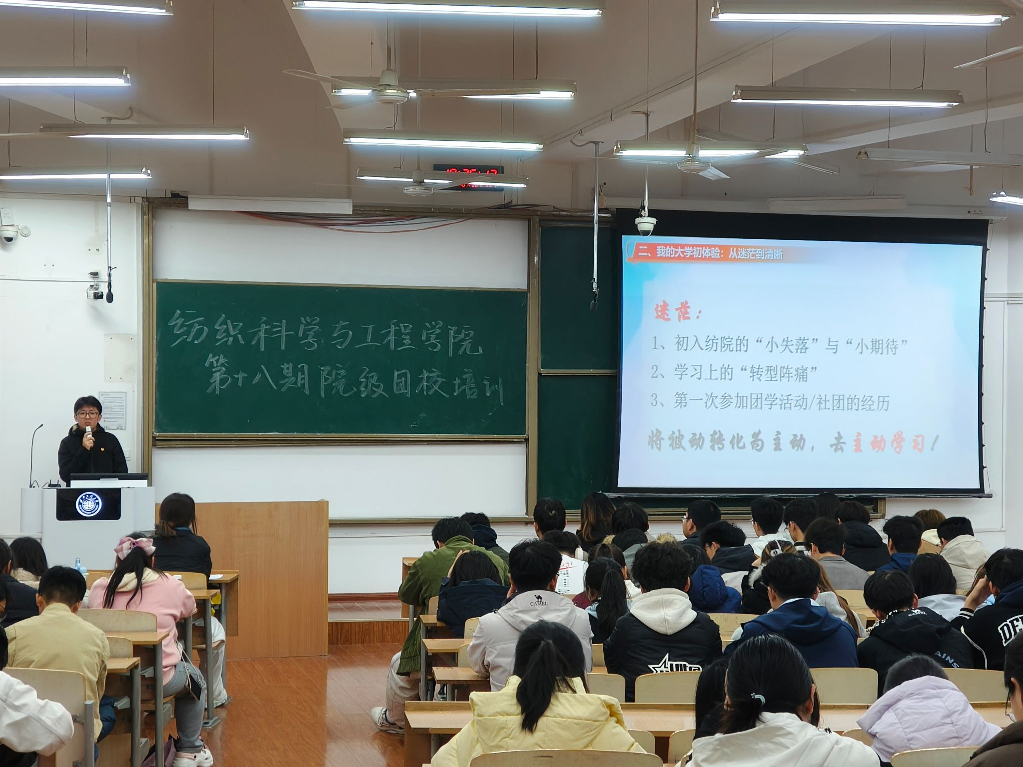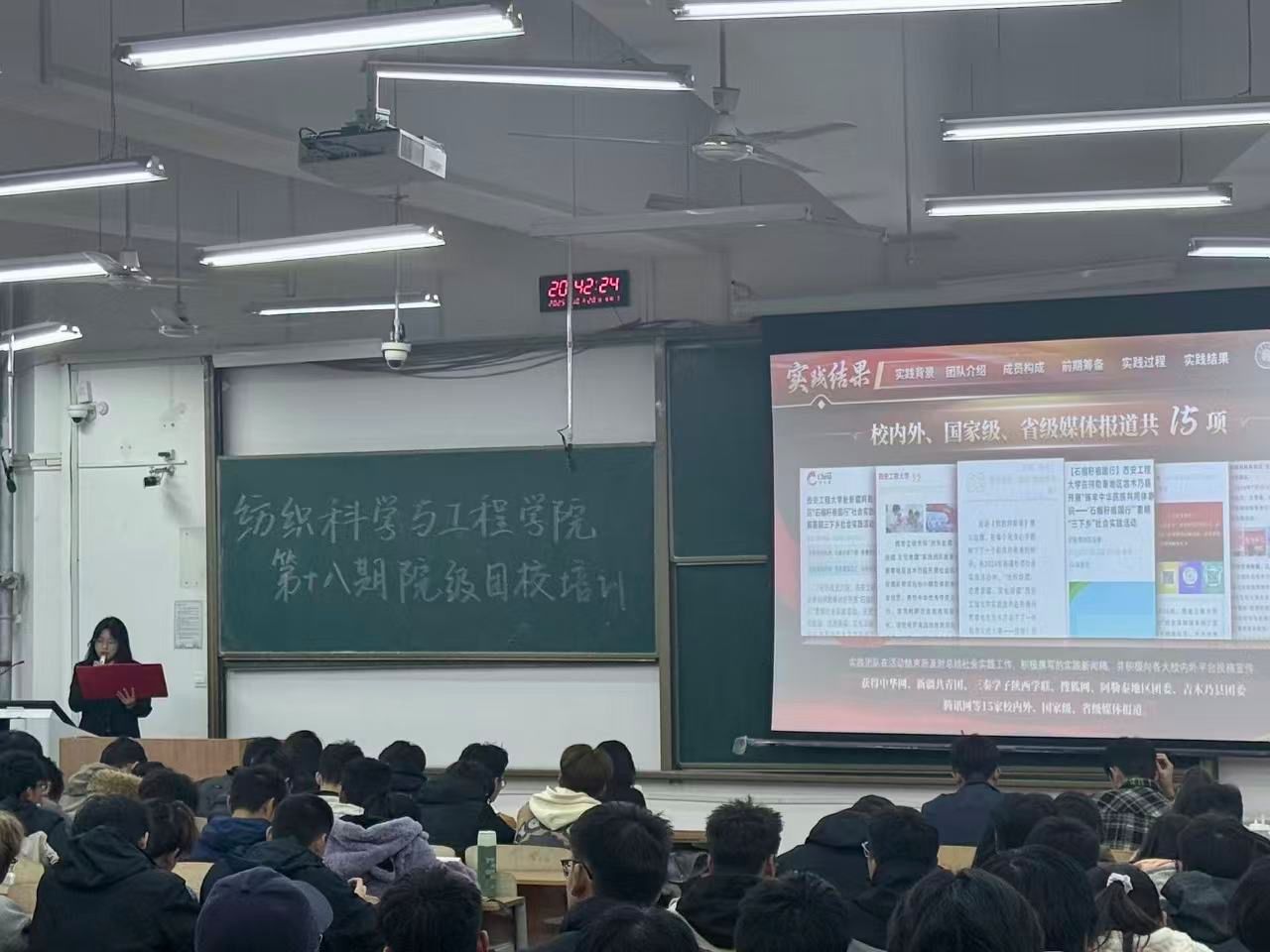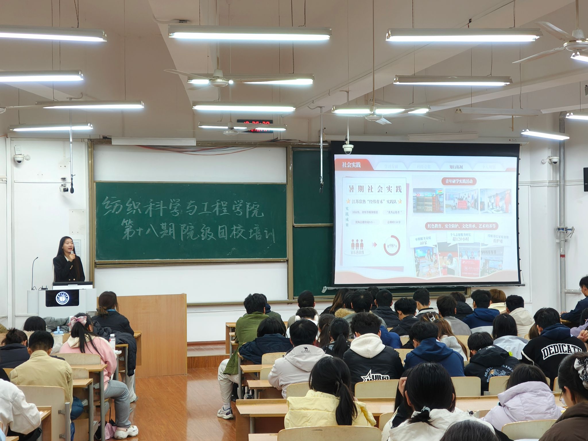 团课第一讲由曹鑫主讲,他带领大家回顾了中国共青团的历史,以《“织梦未来”纺织红色精神引领青年担当作为》为主题开展培训。培训中,他生动诠释了纺织红色精神的核心内涵,鼓励青年学子将这一精神内化于心、外化于行,传承先辈精神,为纺织行业注入新活力,续写辉煌篇章。