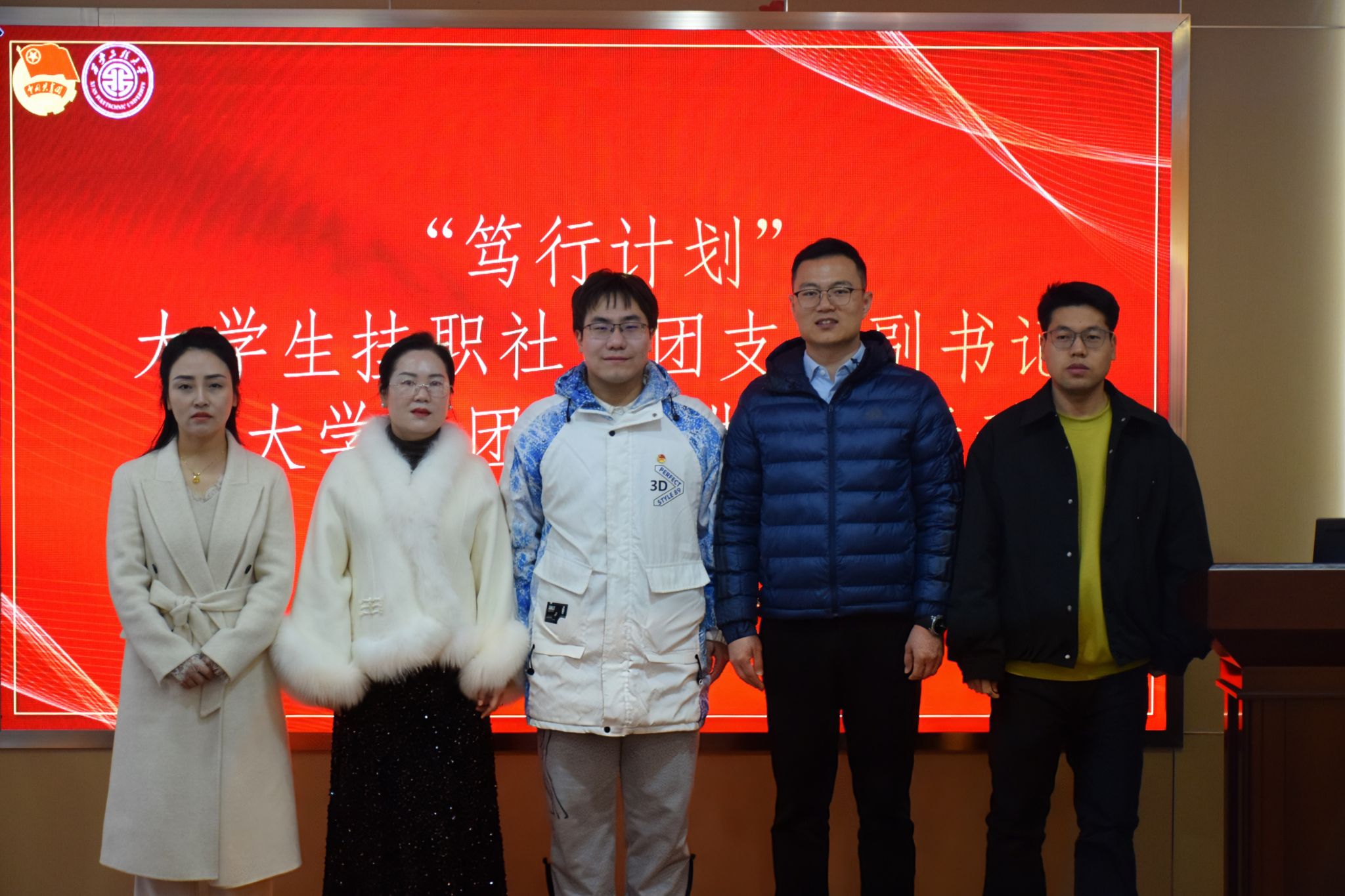 首先进行的聘任仪式上,高敬对挂职社区团支部副书记的古志垚同学表示热烈欢迎。她强调“笃行计划•大学生社区挂职”活动是凝聚青年力量、共建美好社区的重要举措,为双方深度联动奠定了坚实基础。随后,曹鑫宣读相关文件,清晰阐明了大学生挂职社区团支部副书记、团支部进社区活动的初衷与协作方向,明确了校社双方的责任与目标。紧接着,古志垚登台表态,言辞恳切地表达了扎根社区、服务居民、助力社区高质量发展的坚定决心。