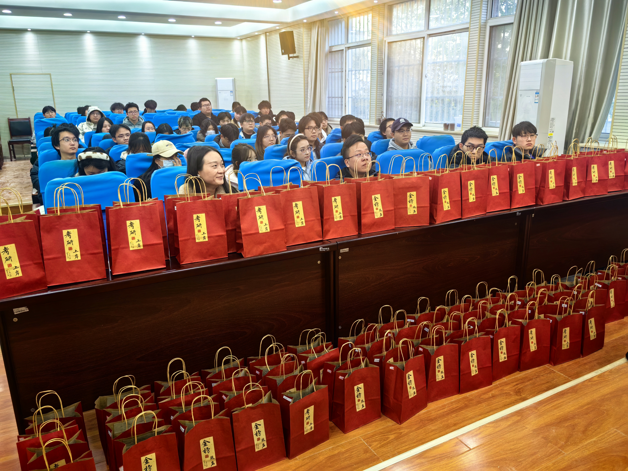 为确保活动顺利进行,学院提前开展礼袋准备工作。辅导员带领党员先锋岗学生分装礼品,并在袋上贴上“金榜题名”“考研上岸”等祝福贴纸,将温暖与鼓励装进每一份礼袋。