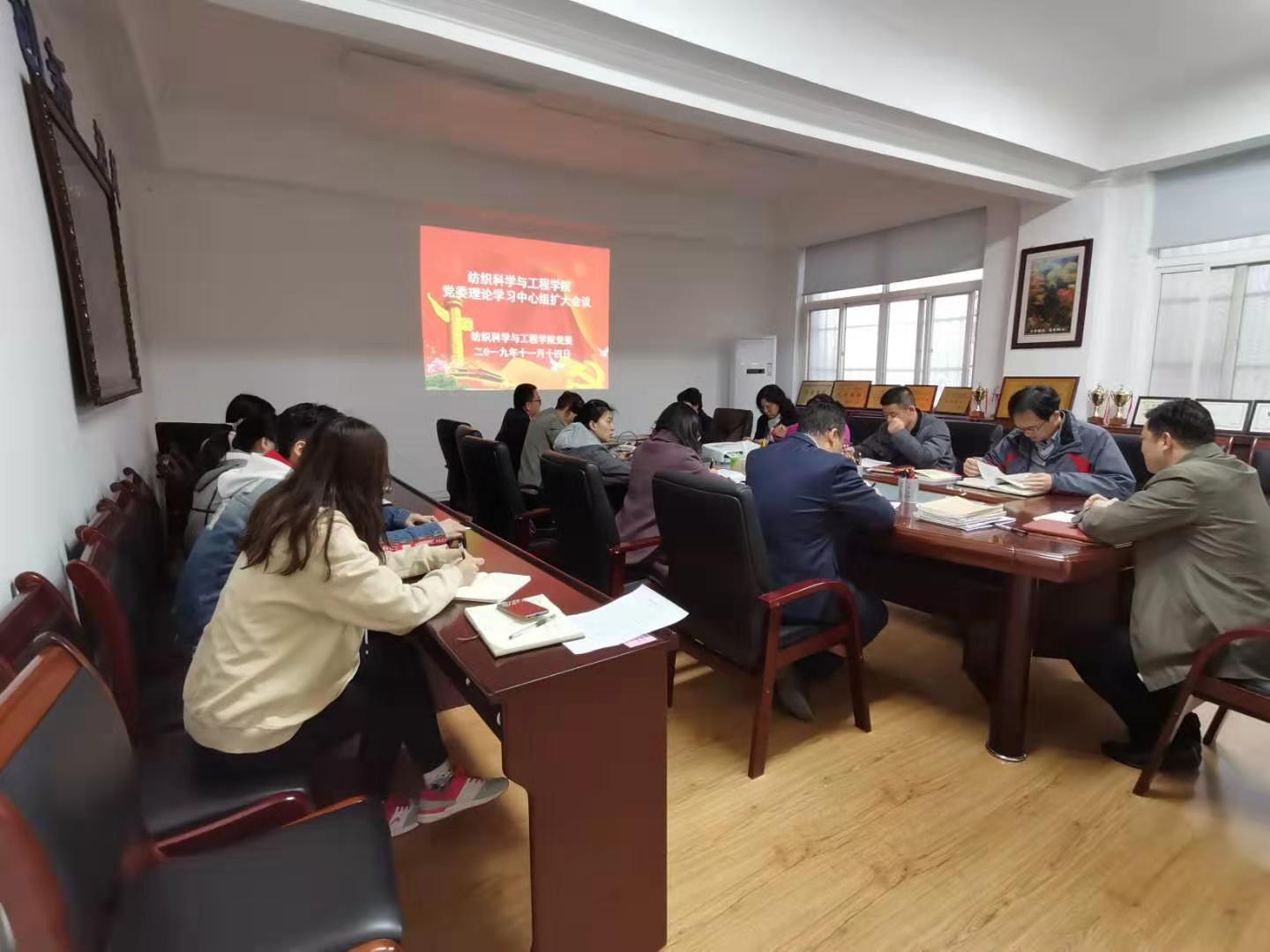 2019年11月15日,米兰milan党委在金花校区纺织楼四楼会议室召开党委理论中心组扩大会议,学院党委理论中心组成员和党支部书记参加会议。会议由党委书记胡小进主持。