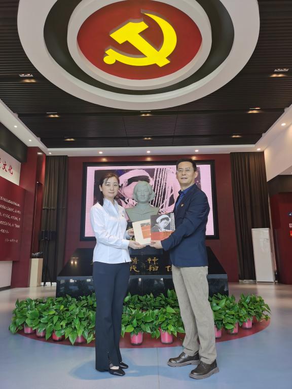 梦桃纪念馆从“光辉历程 纺织骄傲”、“历史丰碑 劳模典范、“爱岗敬业 言传身教”、“巾帼标杆 英明永存”四个部分呈现了新中国纺织行业先进模范代表赵梦桃平凡而伟大的一生。在现任馆长、赵梦桃小组第12任组长王晓荣的引导下,大家依次参观了纪念馆系列照片、学习笔记、获奖证书、奖章展台,认真聆听了赵梦桃的先进事迹和赵梦桃小组背后生动感人的故事,切身体会了全国劳动模范赵梦桃精彩光辉的一生。1987年4月,习仲勋同志为赵梦桃小组题写“梦桃精神 代代相传”,激励着一代又一代梦桃传人,不忘初心、接续奋斗,用心血和汗水铸就梦桃精神永恒的丰碑。在梦桃精神的引领下,赵梦桃小组采用勇于创新、甘于奉献、精益求精的质量管理模式,成功获得第四届中国质量奖提名奖,并在咸阳市中国质量奖评选中实现了零突破。参观完后,现任馆长、赵梦桃小组第12任组长王晓荣为学院赠送了《梦桃精神 代代相传》和《最美奋斗者》书籍。