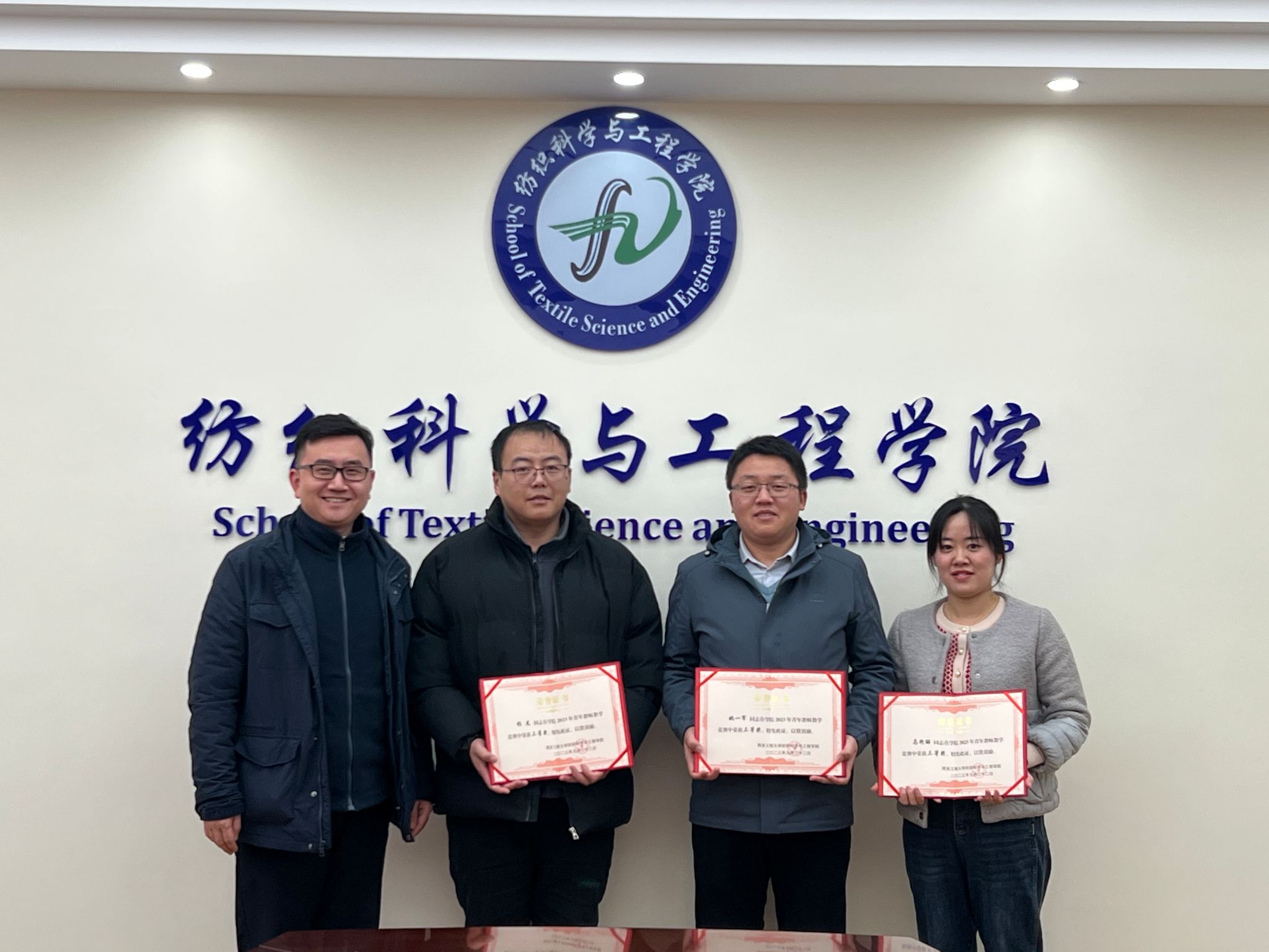 会上,李伟宣布了学院《关于表彰“梦桃班组式”优秀党支部、“梦桃式”优秀共产党员”的决定》,孙润军宣布了学院《关于表彰“梦桃式”优秀教师、“梦桃式”先进工作者的决定》,师文钊宣布了2023年纺织学院青年教师教学竞赛获奖名单。随后李伟、孙润军、师文钊分别为受表彰的先进集体代表和个人颁发了荣誉证书,院工会为受表彰的教师发放了纪念品。