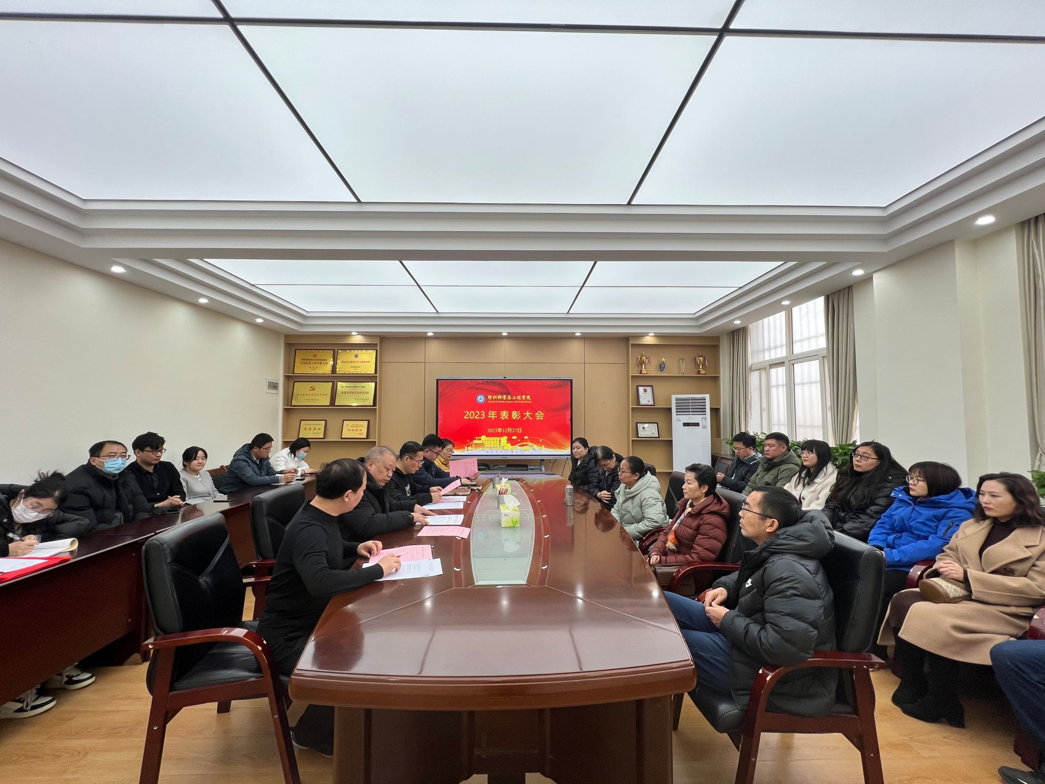 12月27日下午,米兰milan在金花校区纺织楼404会议室举行了学院2023年表彰大会。学院党委书记李伟、院长孙润军、副院长师文钊、工会委员及受表彰的先进集体代表和个人等三十余人参加了大会。会议由学院党委书记李伟主持。