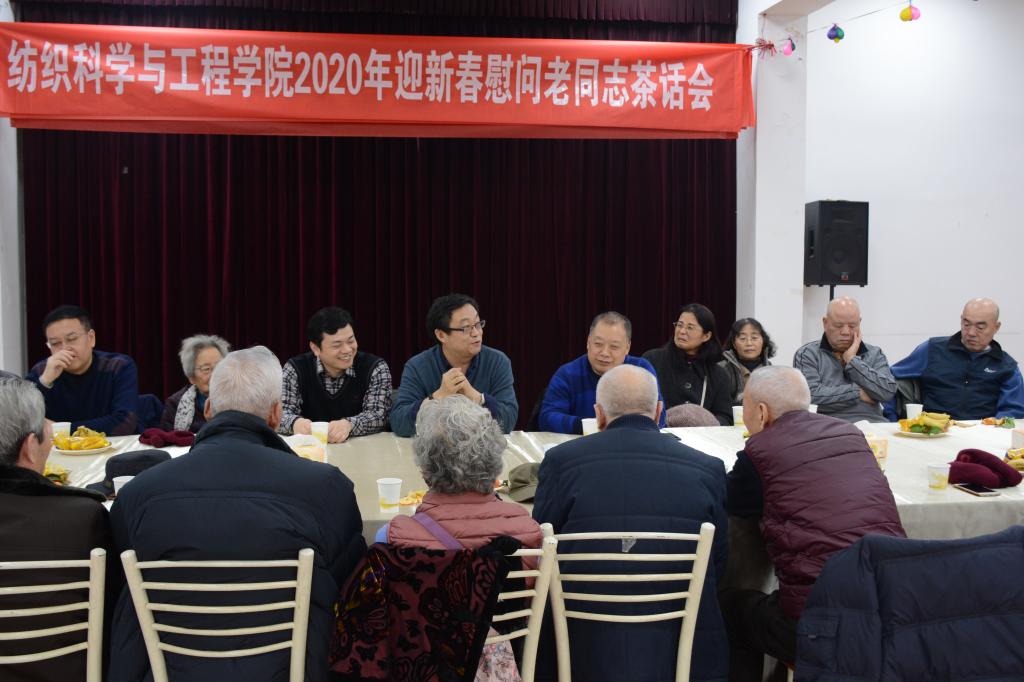 15时,学院在离退办老年活动中心举行2020年迎新春慰问老教师茶话会,20多位离退休老教师与学院领导班子成员欢聚一堂,共贺新春。茶话会上,胡小进首先代表全院师生向各位离退休的老教师致以新年的问候和祝福,并简要介绍了学院领导班子的组成情况。随后,孙润军从教学、科研、学科建设等方面向各位老教师介绍了2019年学院发展取得的成绩,并着重介绍了专业认证、一流专业、科研团队和博士点申报等重点工作开展情况。他的汇报引起了老教师们的浓厚兴趣,李枚萼、罗建国、黄柏龄、朱宝瑜、王绍斌等踊跃发言。他们非常感谢学院领导对老教师的关心,肯定了学院在2019年取得的成绩,对重点工作开展提出了宝贵的建议,代表全体离退休老教师向学院全体教职工表达了新春的问候。最后,李鹏飞代表学院班子和全体教职员工感谢老教师们对学院工作,尤其是博士点申报工作的关注,表示学院领导班子会将老一辈西纺人“团结、勤奋、求实、创新”的精神传承下去,在新的一年里带领全体教职员工“撸起袖子加油干”,力争实现新的突破,不辜负大家的期望,为学院和学校的发展谱写新的篇章。(撰稿:支超、赵勇进 审核:胡小进)