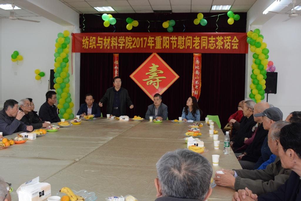 张一心首先代表全院师生向各位离退休的老领导、老教授致以节日的问候和祝福。他指出重阳节是光荣传统,要一直传承下去,并邀请各位老教师一起“话过去、展望未来”,希望能够为学院发展建言献策。随后,张平对纺织学院每年组织的慰问活动表示感谢,他说纺织学院近三年每年都组织重阳节慰问老同志座谈会,体现了纺织学院对各位老教师们的关心,最后他祝各位老教师们身体健康、万事如意。郭西平就近一年学院的发展变化向老教师们做了汇报,并转达了学院党政班子其他成员对大家的问候。